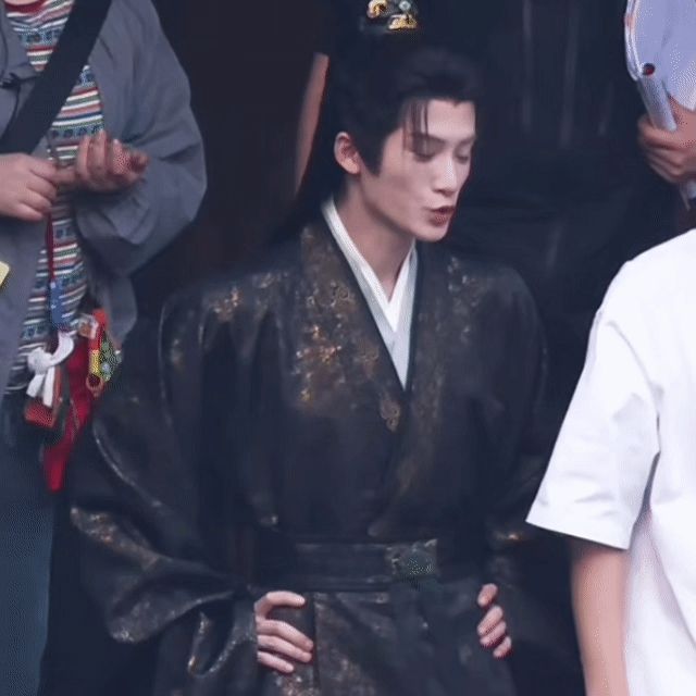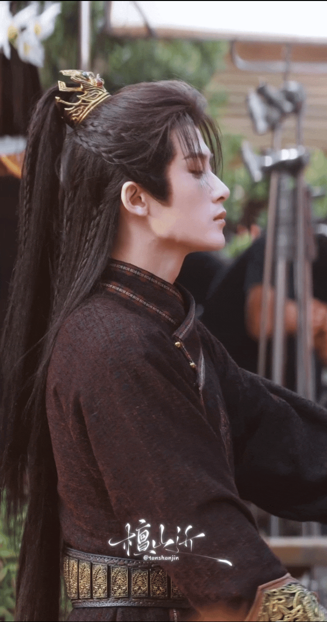 这套造型是第二次出现了,上次应该是在大佛寺,檀健次宽肩细腰窄胯,肩背的线条在广袖里依旧挺拔利落,举手投足活脱脱就是从古籍里走出来的世家掌权人,一抬眼便自带不怒自威的气场!