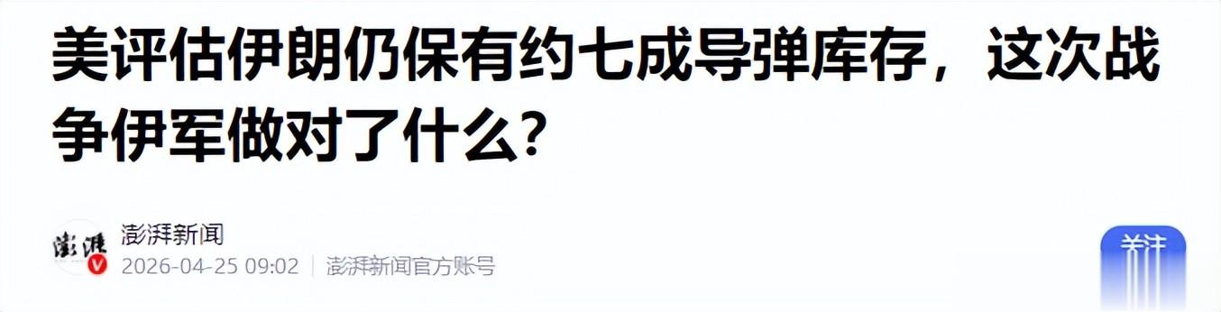 伊朗通过多年以来构建的分散部署体系,确保导弹库存仍然维持在大约七成左右,核心打击能力并未被摧毁。