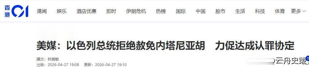 与此同时,以色列国内局势却在恶化,4月26日,以色列总统再次表示拒绝赦免内塔尼亚胡并力促达成认罪协定。