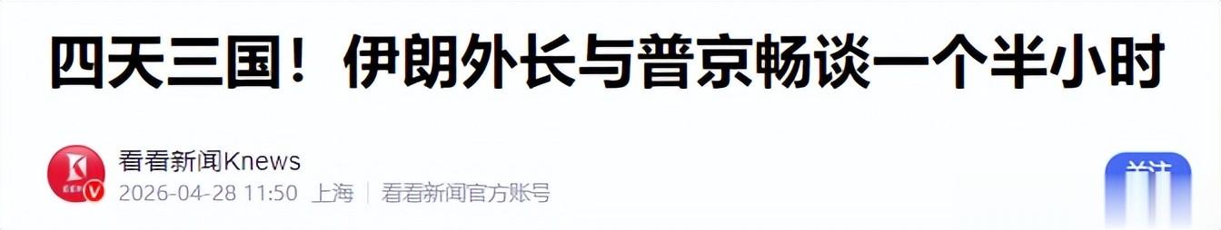 4月27日,伊朗外长阿拉格齐前往圣彼得堡,与普京进行了一场持续九十分钟的闭门会谈。