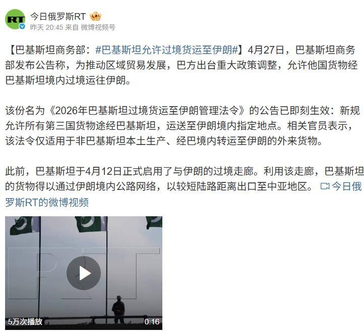 同一天,巴基斯坦方面作出关键决定,允许货物过境其领土转运伊朗,其中,瓜达尔、卡拉奇和卡西姆港更是将成为主要的海陆口岸过境点。