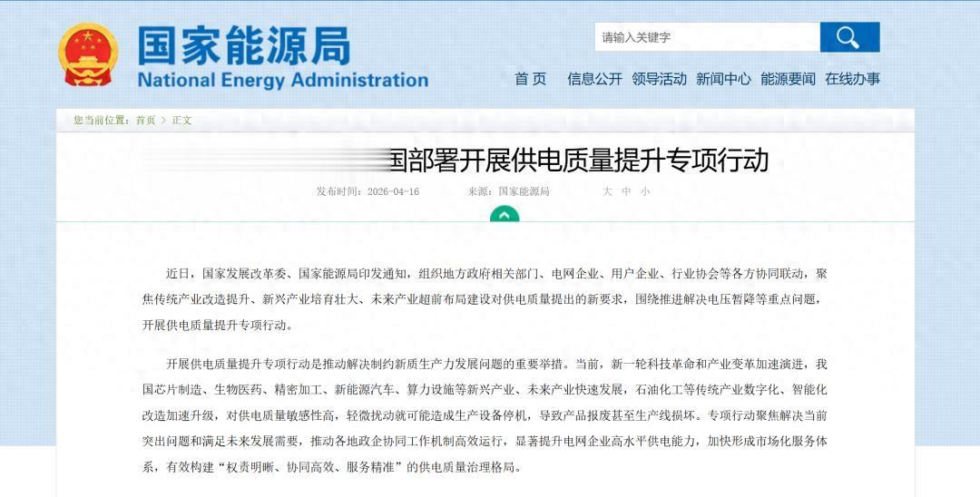 4月16日,来自国家发改委与国家能源局的联合通知下发了。这份关于“供电质量提升专项行动”的文件,与以往的此类文件措辞很不一样。