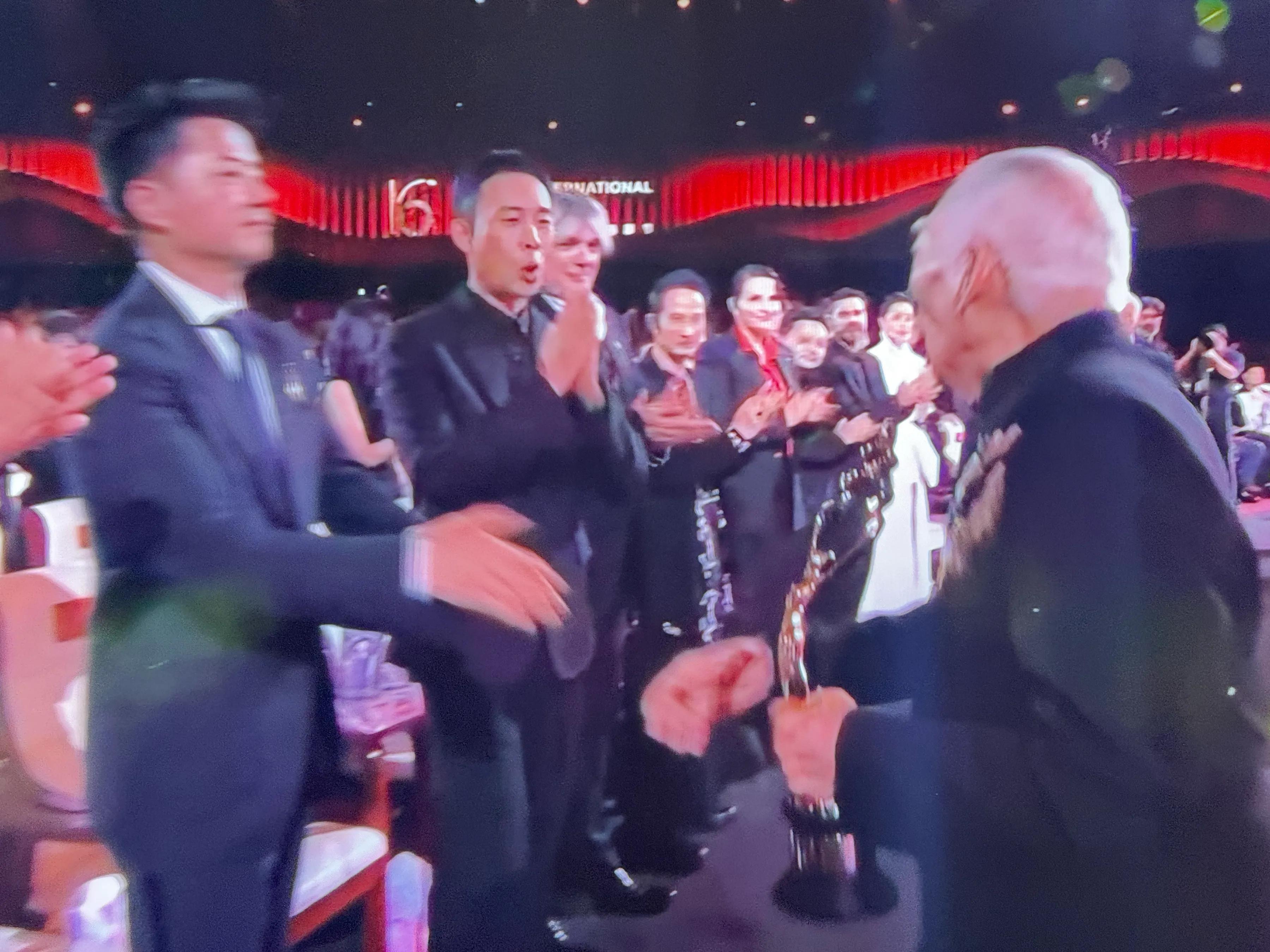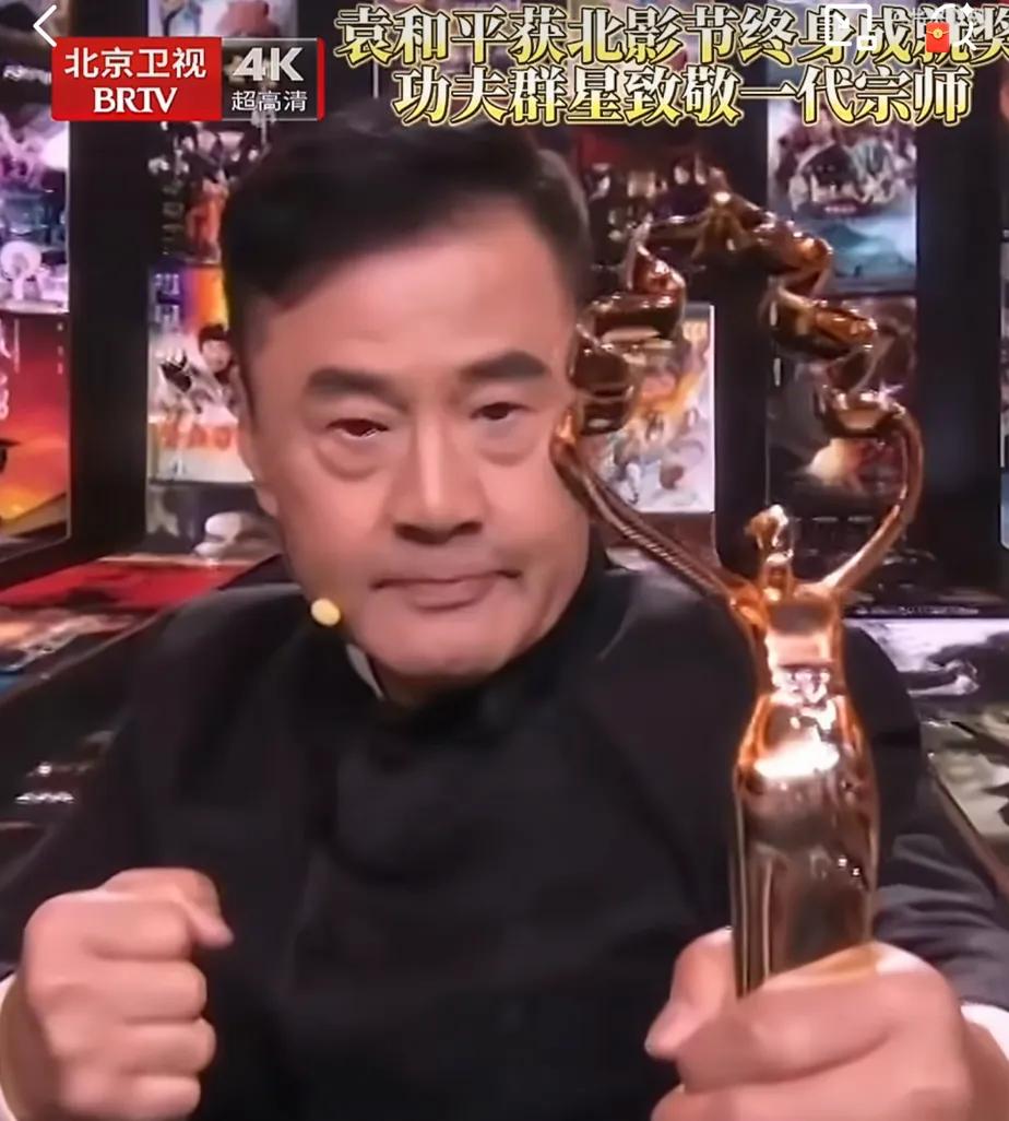 81岁的袁和平获得北影节终身成就奖,当“八爷”,颤巍巍地走上台,接过了那座沉甸甸的“终身成就奖”奖杯。那一刻,台下所有明星自发站起来,对一代宗师致敬!