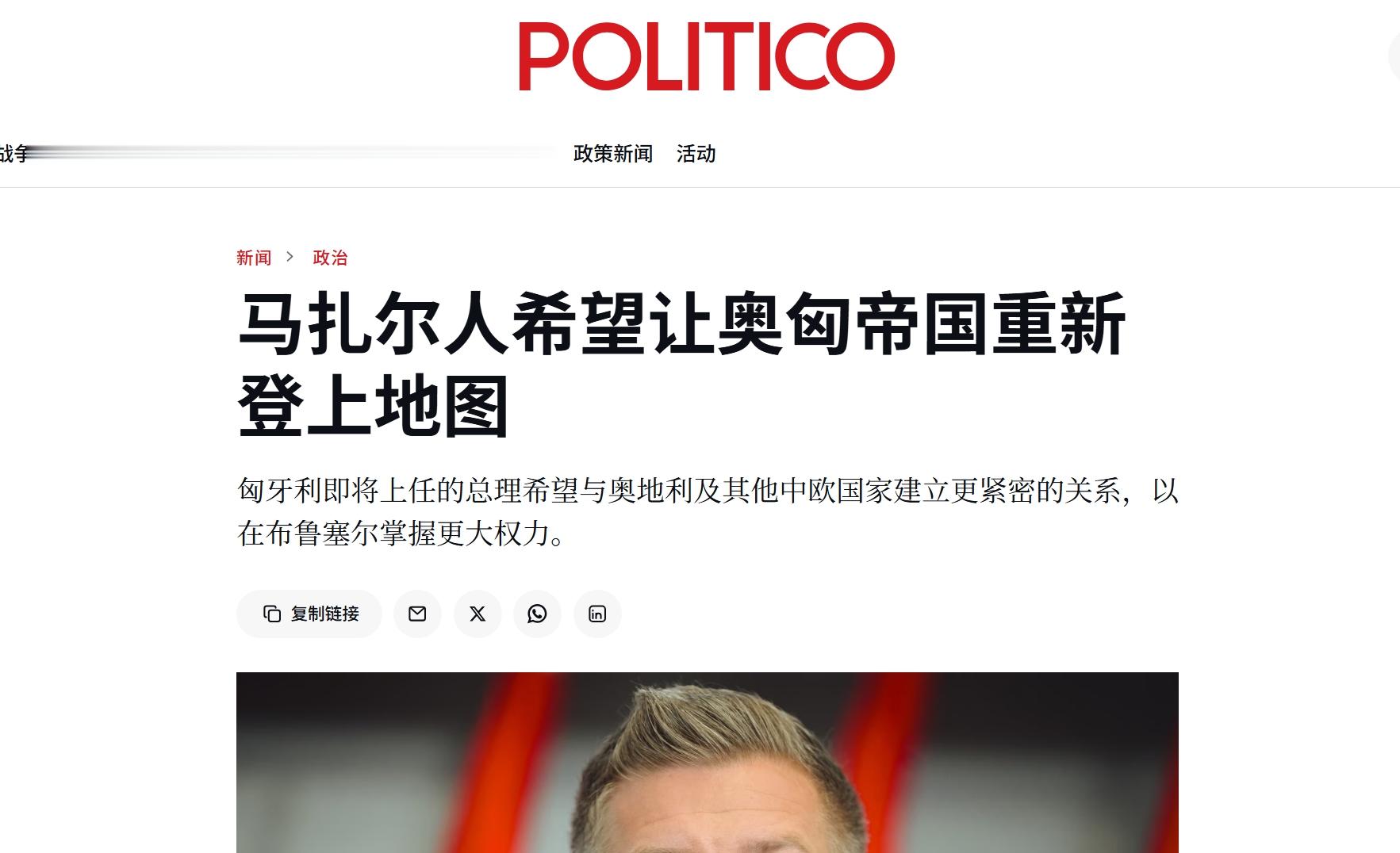 这下一些媒体“傻眼”了,原本以为欧尔班就够难对付的,被欧盟领导层和欧美建制派媒体所寄希望的匈牙利新当选总理毛焦尔现在似乎比欧尔班还要“危险”——4月22日,“政治”网欧洲版发文担心:毛焦尔似乎正希望恢复当年的“奥匈帝国”(注),因为他正试图“利用奥匈帝国时代的遗产,重振中欧地区的影响力”。