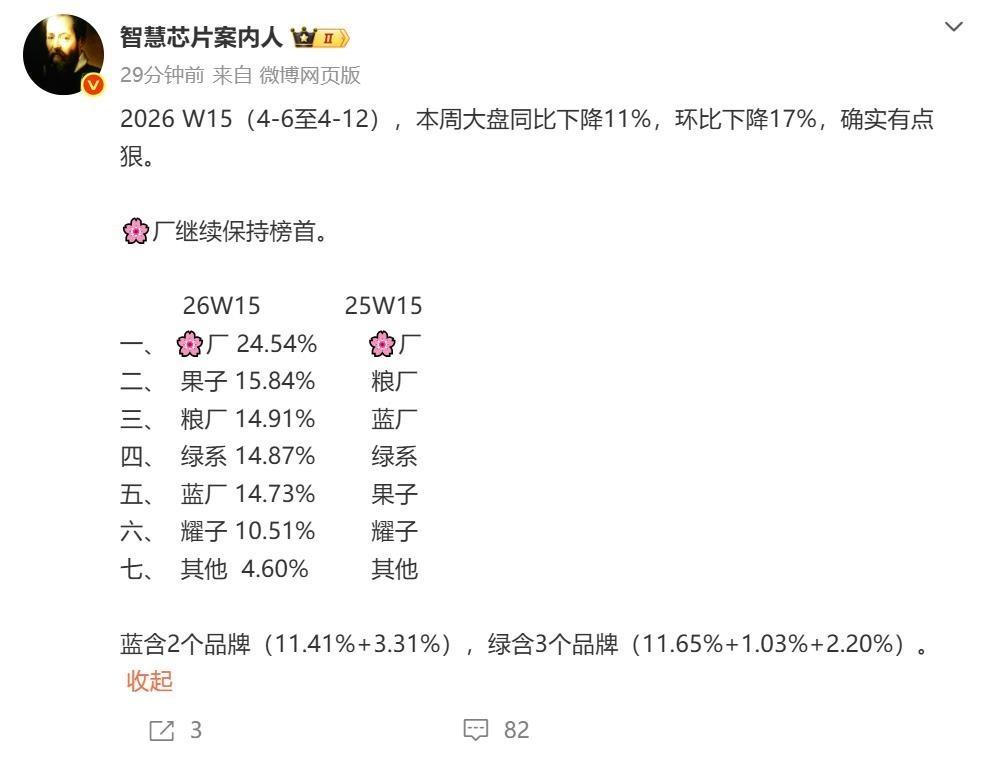 黑子们认为,首销而已,有什么好吹的,首销过后肯定回落。数据再次给了他们一记响亮的耳光。2026年W15的数据出炉, 华为的市场份额依然高达24.54%,断层式的领先第二名的苹果。单机销量方面,畅享ProMax依然稳居单机销量榜第一,畅享90Plus排名第七。值得一提的是,畅享90标准版将于4月23日上市,预估上市后轻松进入TOP10,届时火力会更猛。