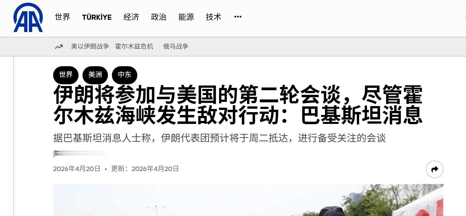 在美国宣布4月21日举行对伊会谈后,土耳其安纳托卢通讯社援引巴基斯坦官员的消息称,伊朗将在4月22日抵达伊斯兰堡,与美国进行二轮和谈。