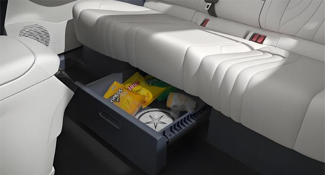 10升的副驾抽屉,搭配静音滑轨,开合时安静无噪音,不会惊扰到后排熟睡的孩子,内部空间规整,能轻松容纳多台笔记本电脑,接孩子放学时,书包、文件袋、孩子的小玩具都能随手放入,不用散乱在脚垫上,保持座舱整洁。中央扶手箱下方有20升的镂空储物舱,容量比不少同级车型更大,宝妈的大号手提包、化妆包都能轻松放进,不用占用座椅空间。门板储物槽能容纳多只大容量水杯,孩子的保温杯、矿泉水瓶,还有宝妈的养生茶,都有合适的放置位置,伸手就能拿到。后排座椅下方还有28升的储物空间,孩子的换洗衣物、小毯子、零食等杂物,都能妥善收纳,让座舱始终保持整洁有序。