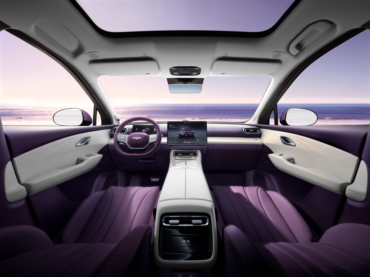 车厢就是当下新能源车主流的设计风格,两个大屏,配合T字型中控台,采用灵犀智能座舱(内置3nm芯片,中控屏采用风云UI 2.0,可支持灵犀智能体、全场景语音助手、全品牌智能手机互联、魅力场景模式和无麦K歌等),整体是偏向于家用温馨的风格。