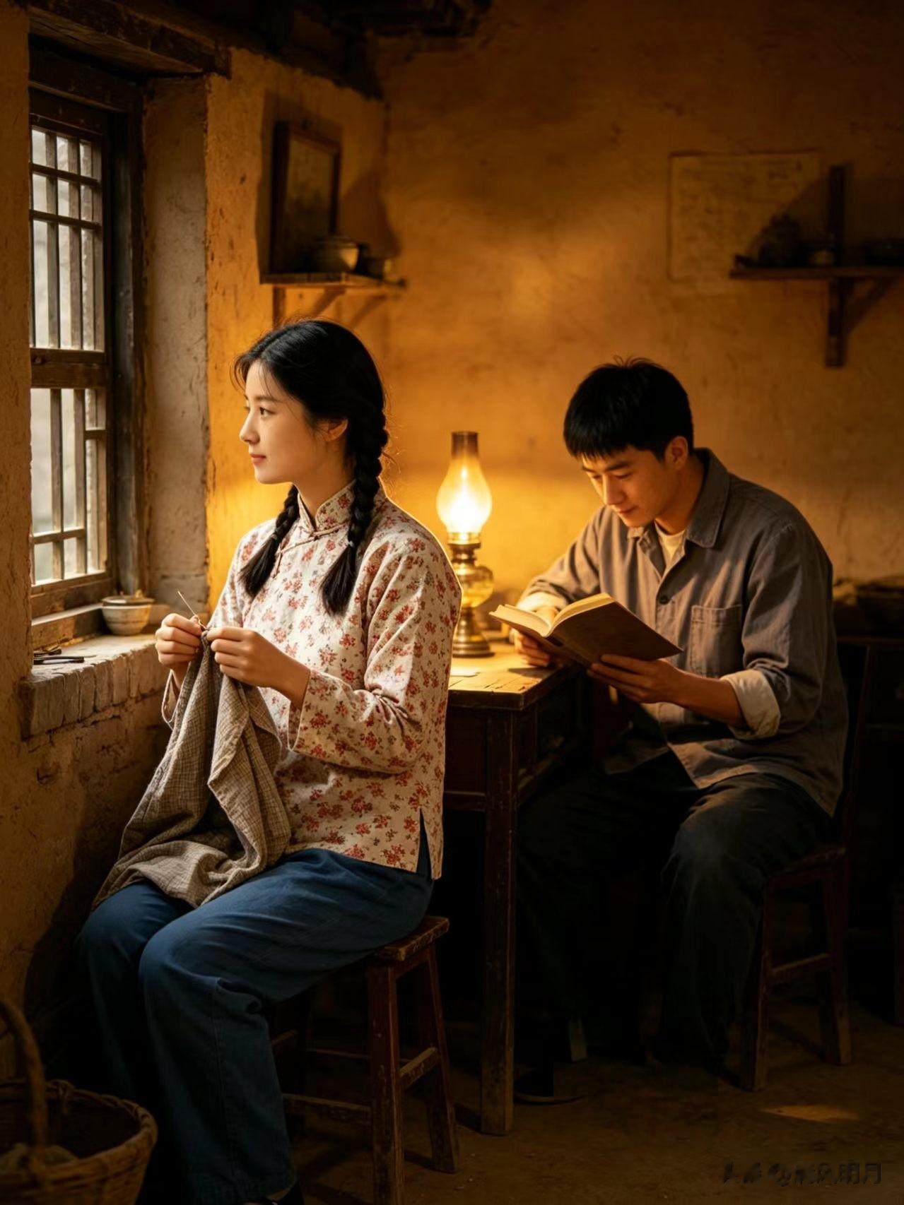 白日里,她独自扛起农活家务;深夜里,她守着一盏昏灯,一针一线缝补衣裳,目光望着远方,把满心牵挂,都藏进无声的等候里。