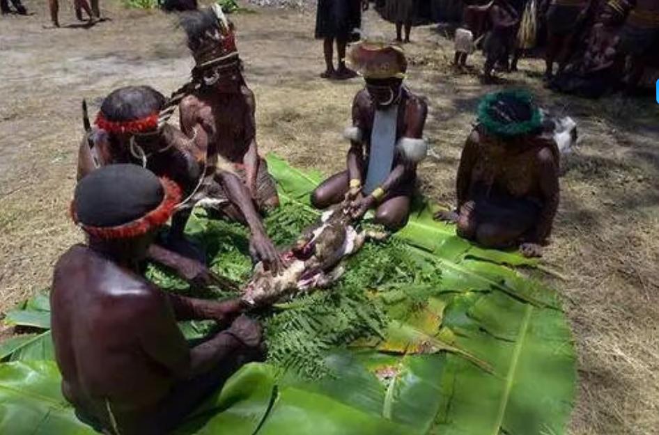 另一个参照系是新几内亚的Fore部落。这个部落直到20世纪中期还保留着食用逝者遗体的丧葬习俗,也因此爆发过库鲁病(俗称“笑死病”)。