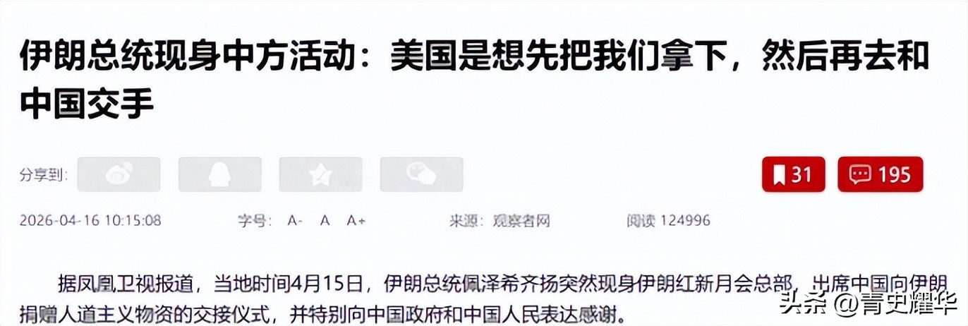 伊朗总统这番话,硬生生扭曲了中伊援助的本质,把两国平等友好的互助,变成了带有利益捆绑的“挡枪交易”,不仅曲解了中国的善意,还拉低了两国合作的格局,这样的表态,实在算不上成熟,也让这份暖心的援助变了味道。