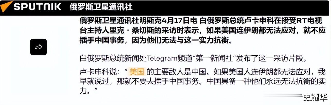 中国有句古话,叫做“听君一席话,胜读十年书”。谁都清楚美国不会放过中国,但是白俄总统的一席话,却值得伊朗总统再学10年。