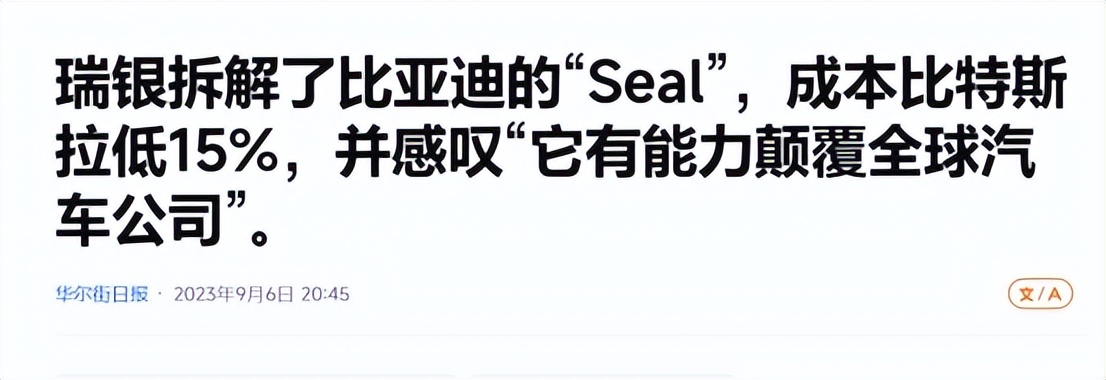 为了搞清楚这到底是怎么回事,瑞士银行做了一件很直接的事,他们买了一辆卖得特别火的比亚迪海豹,然后把它拆了,一个零件一个零件地分析。