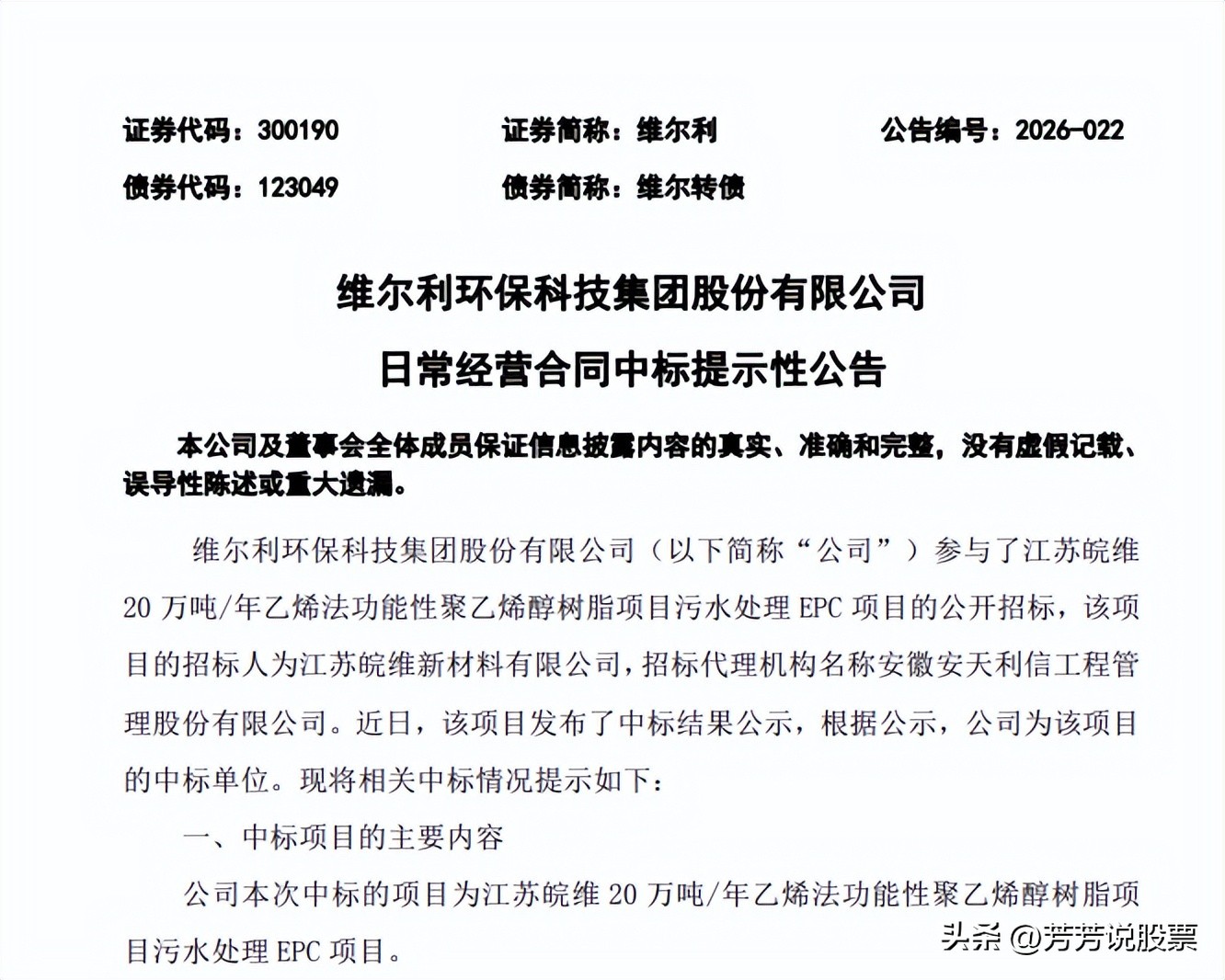 第四家:维尔利,中标项目名称:江苏皖维20万吨/年乙烯法功能性聚乙烯醇树脂项目污水处理EPC项目;中标金额4488万元;公司已成为专业化国内领先企业,为客户提供垃圾渗滤液、餐厨垃圾、厨余及混合垃圾、生活垃圾焚烧发电、市政污水及污泥、沼气及生物天然气、烟气净化方案。