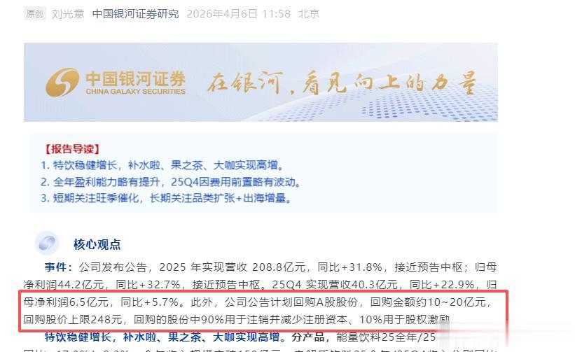 第二家:东鹏特饮,公司公告计划回购A股股份,回购金额约10~20亿元,回购股价上限248元,回购的股份中90%用于注销并减少注册资本、10%用于股权激励。在我看来,只有回购注销才是真金白银的利好,才是良好心公司。