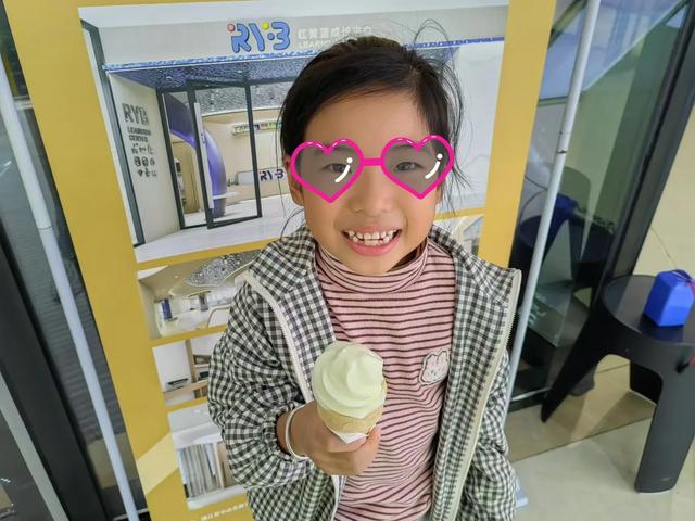 路过甜品站,给她买了一个小甜筒,马上要冷了,此时不吃更待何时?!