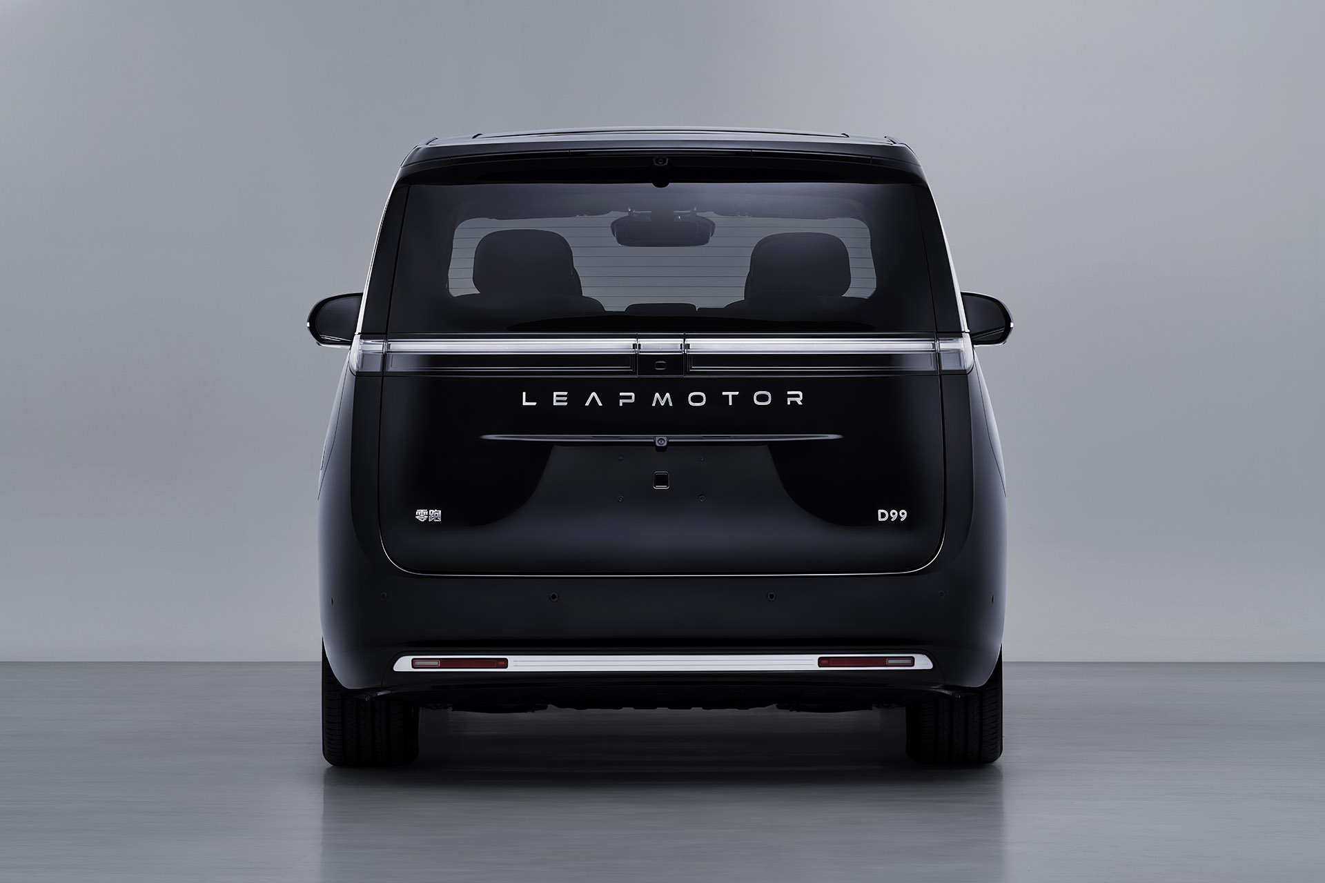 多说两句哈,去年底首发亮相时,D99的全车玻璃都刻意处理成全黑状态,哪怕VAN哥当时站在车边也看不清任何内饰细节(见下图)。不过零跑高层当时已公开披露,D99将搭载算力1280TOPS的双8797芯片+VLA大模型辅助驾驶、二排的半苯胺头层真皮航空座椅、车规级氧舱等行业领先配置。