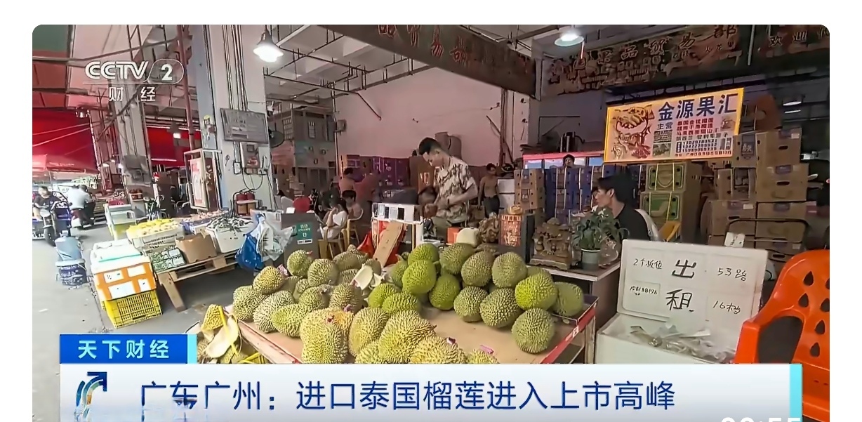 最近,爱吃榴莲的小伙伴们有口福了!在广东广州的水果市场,泰国榴莲正大量上市,堆得像小山一样,简直是榴莲爱好者的天堂。