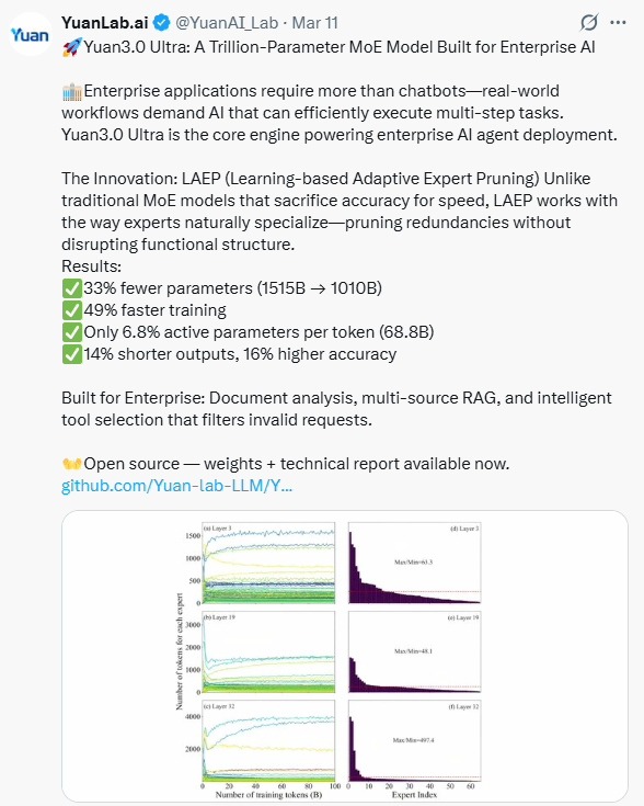 Yuan3.0 Ultra采用LAEP显著提升预训练效率