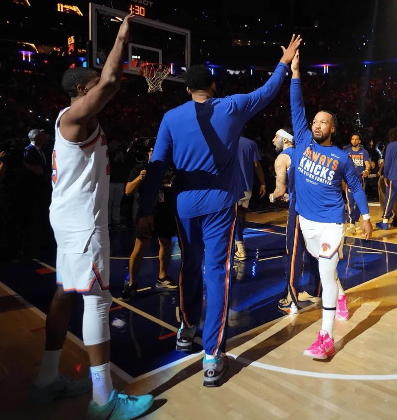 尼克斯队在本场比赛中表现出色,他们的战术执行十分到位,球员之间的配合也相当默契。尤其是球队核心球员之一的杰伦 - 布伦森,他在这场比赛中发挥了至关重要的作用。布伦森全场出战36分钟,在这36分钟里,他始终保持着高度的专注和良好的竞技状态。从进攻端来看,他的投篮表现可圈可点,全场投篮22次命中9球,投篮命中率保持在一个较为可观的水平。特别是他的三分球能力,在4次三分出手的情况下命中3球,三分命中率高达75%。这充分展现了他在远距离投篮方面的精湛技艺和稳定心态。而在罚球线上,他也毫不手软,8次罚球命中7球,罚球命中率达到了87.5%。凭借着这样出色的表现,布伦森全场得到了28分,此外还贡献了5个篮板、7次助攻以及1次抢断。他在场上不仅能够自己得分,还能通过精准的传球为队友创造得分机会,展现出了全面的篮球能力和出色的团队意识。