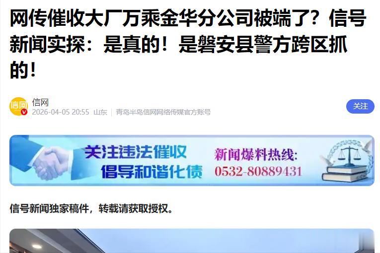信息来源:网传催收大厂万乘金华分公司被端了信号新闻实探:是真的!是磐安县警方跨区抓的!