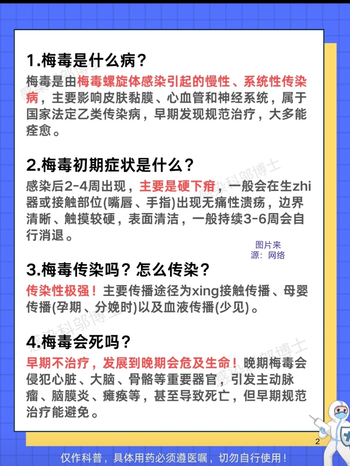 尤其是40-60岁的中青年人群,作为神经梅毒的高发群体,更要提高警惕,一旦出现快速进展的痴呆或精神行为异常,一定要及早排查神经梅毒。同时,也要树立正确的健康观念,守住行为底线,做好自我防护。