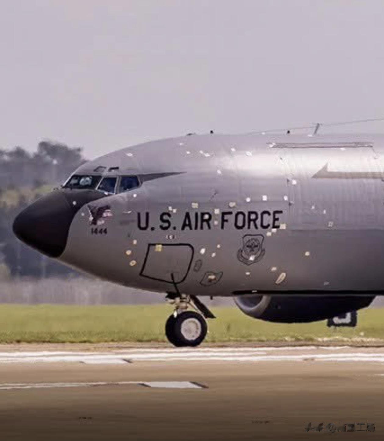 同时,一架从中东返回的美国空军KC-135加油机,机身布满多处修补过的弹片孔,很可能是在伊朗对沙特苏丹王子空军基地发动的袭击中受损。这架美军加油机,是在英国米尔登霍尔皇家空军基地被发现的。整架加油机上,遍布着数十个修补过的弹孔,这些弹孔是由伊朗对沙特苏丹王子空军基地的导弹,无人机袭击所造成的。目前,这架加油机已准备飞往美国进行维修。这架美军加油机,被伊朗导弹炸的挺狠,驾驶舱都给炸了,美军这算是先紧急补一下破洞,恢复一下飞行设备,剩下的等到了美国本土,再精修补漆。这弹孔密度一看就是集束弹头打的。伊朗导弹数量还是无法完成洗地,哪怕是用蜂群自杀式无人机,都不可能让美军大型飞机幸存。