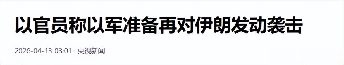 央视新闻报道称,当地时间2026年4月12日,以色列一名国防高级官员称,目前,以色列国防军已进入“高度戒备状态”,正在为重启针对伊朗的军事行动做准备,同时也为伊朗可能对以色列发动的突袭做准备。而根据世纪航线航行系统数据,大量美国货机正飞往中东,以色列和美国准备重启对伊朗的战争。在以色列的本古里安机场,美国已经降落了数十架KC-135加油机,这些飞机于12小时前从欧洲起飞。