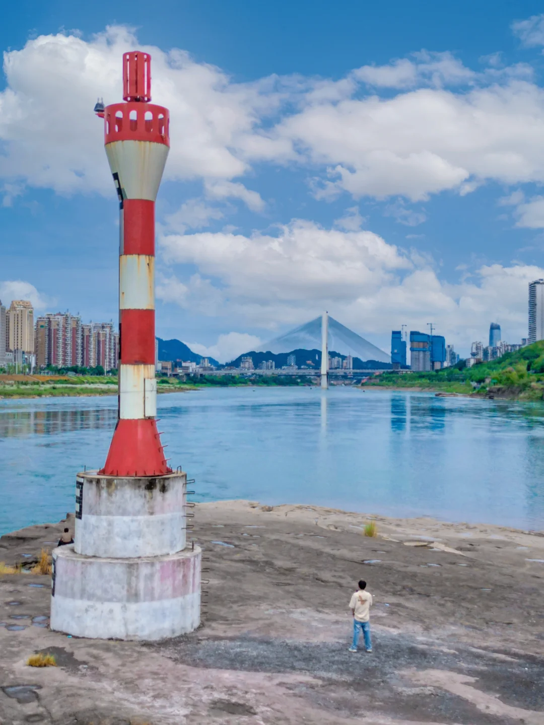 宜宾现在很火的网红打卡地,江边的巨石礁,还有一座很美的红白灯塔!拍照很有氛围,很适合吹江风喝茶