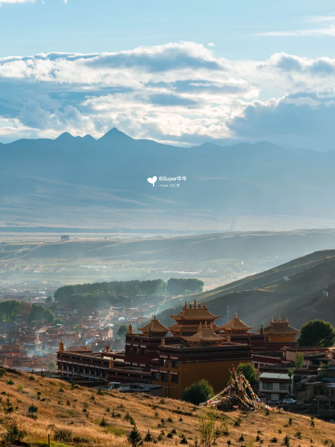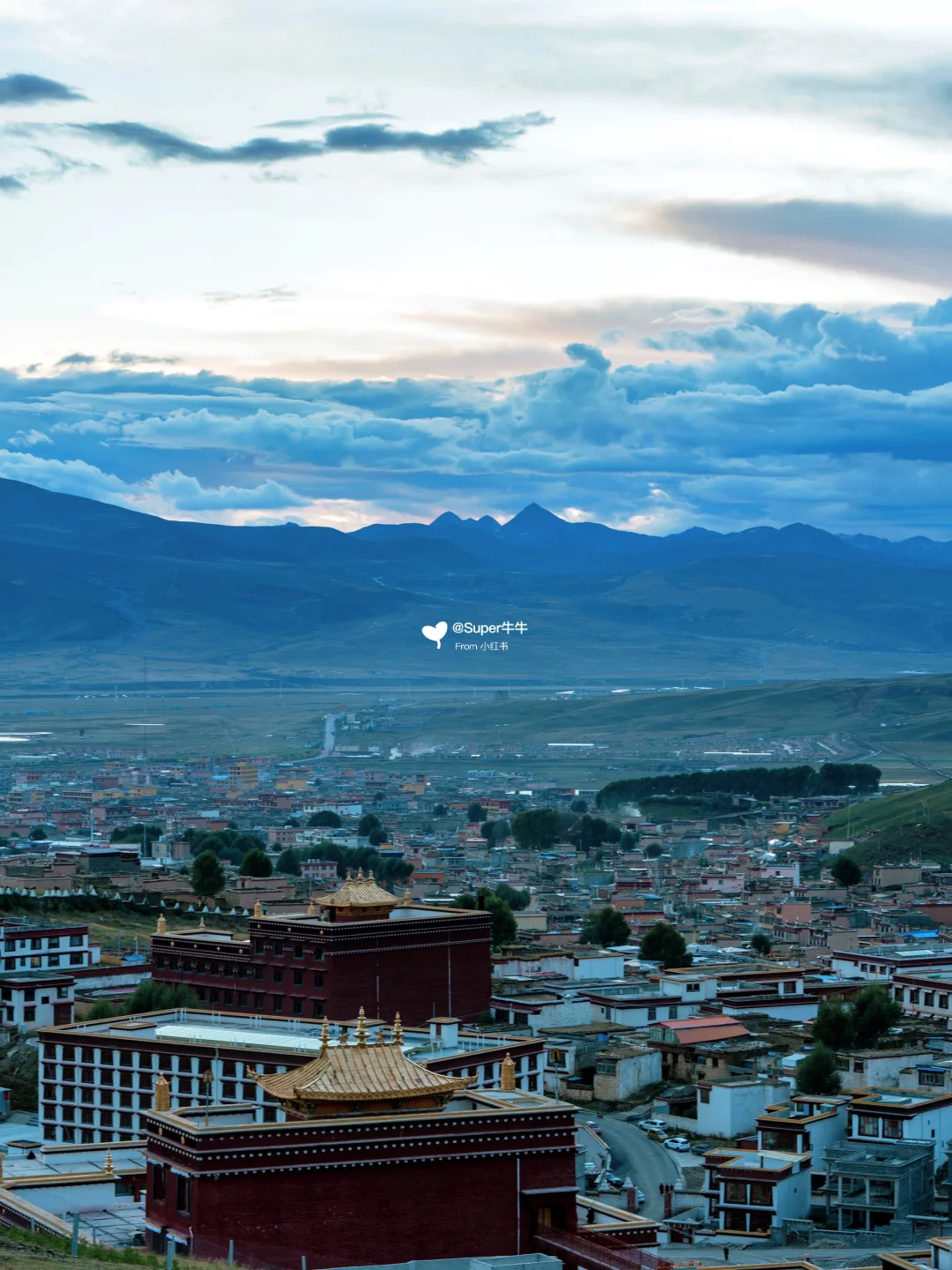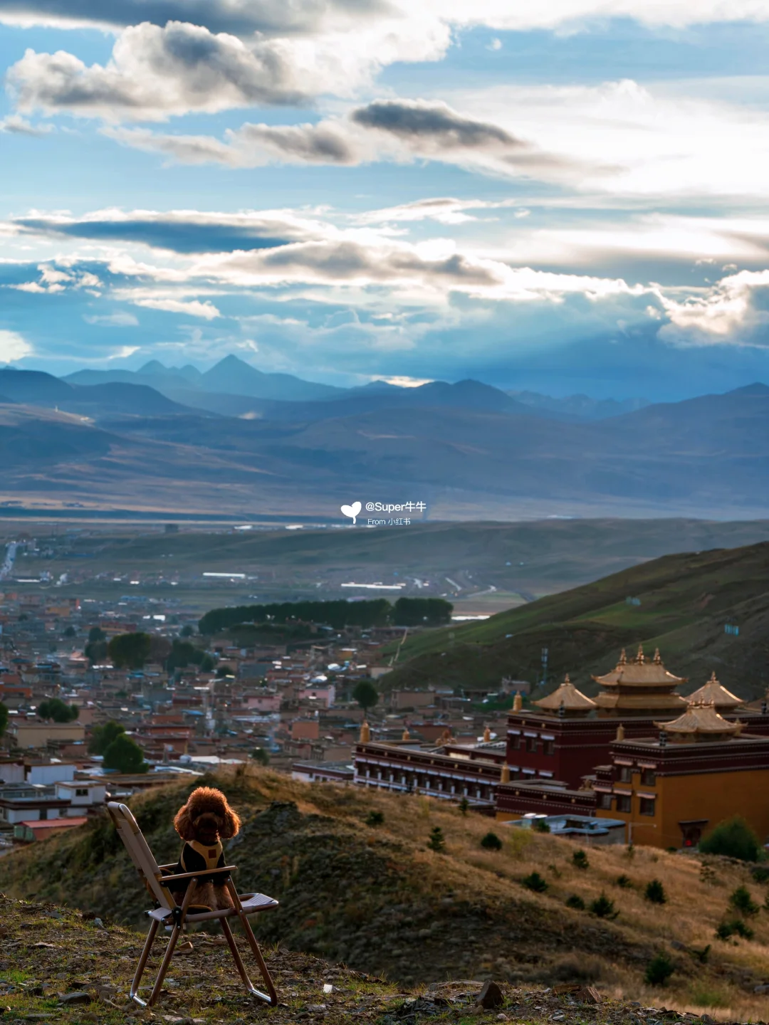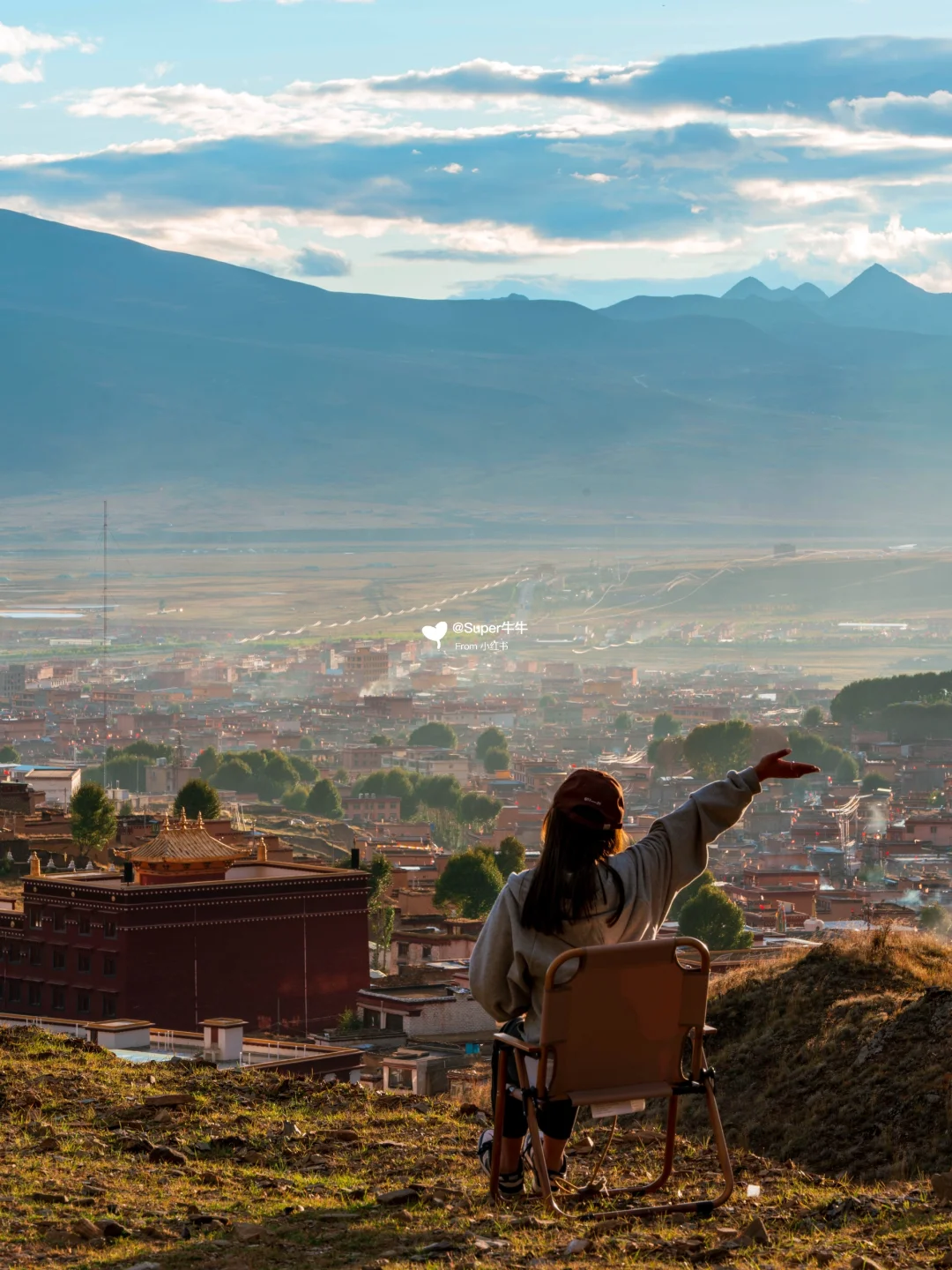 ✔️这里是理塘不可错过的日落圣地!可以俯瞰整个理塘~当橘色系的夕阳把整个城市都染成金黄色,那一刻我们驻足了很久,因为连天上的每一朵云都是那么的治愈温柔~