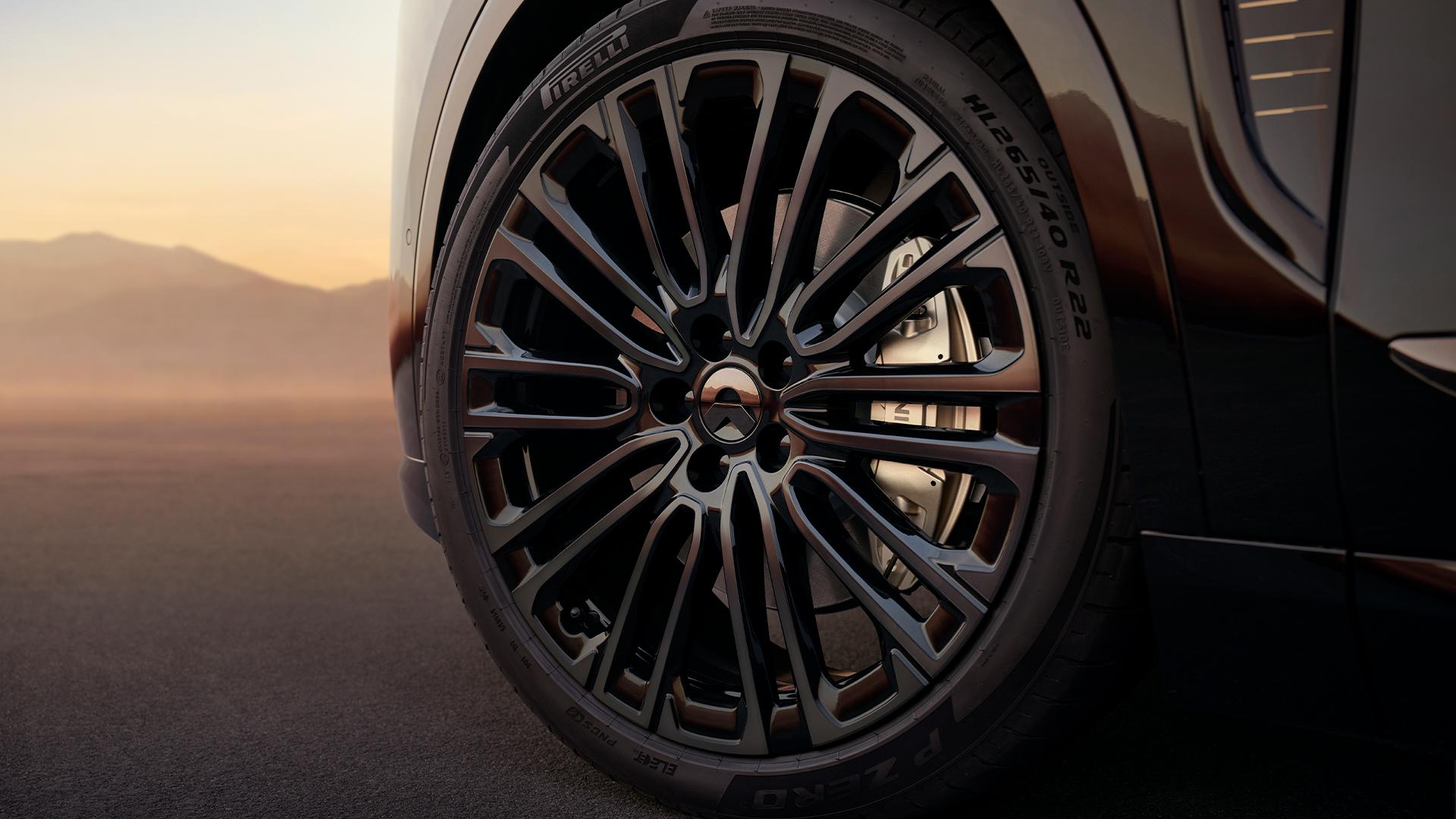 极夜黑车身配黑铬外饰、22寸锻造玄金星耀轮圈、曙光金卡钳——黑色打底、金色点缀,这配色,一看就是冲着商务人群来的。