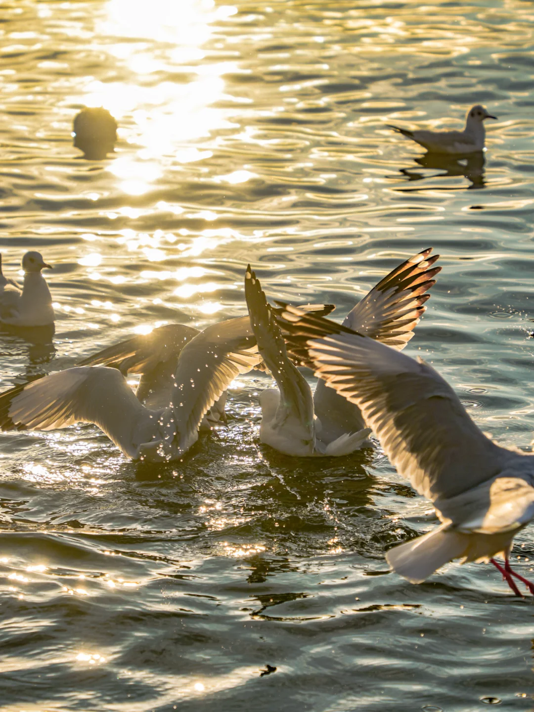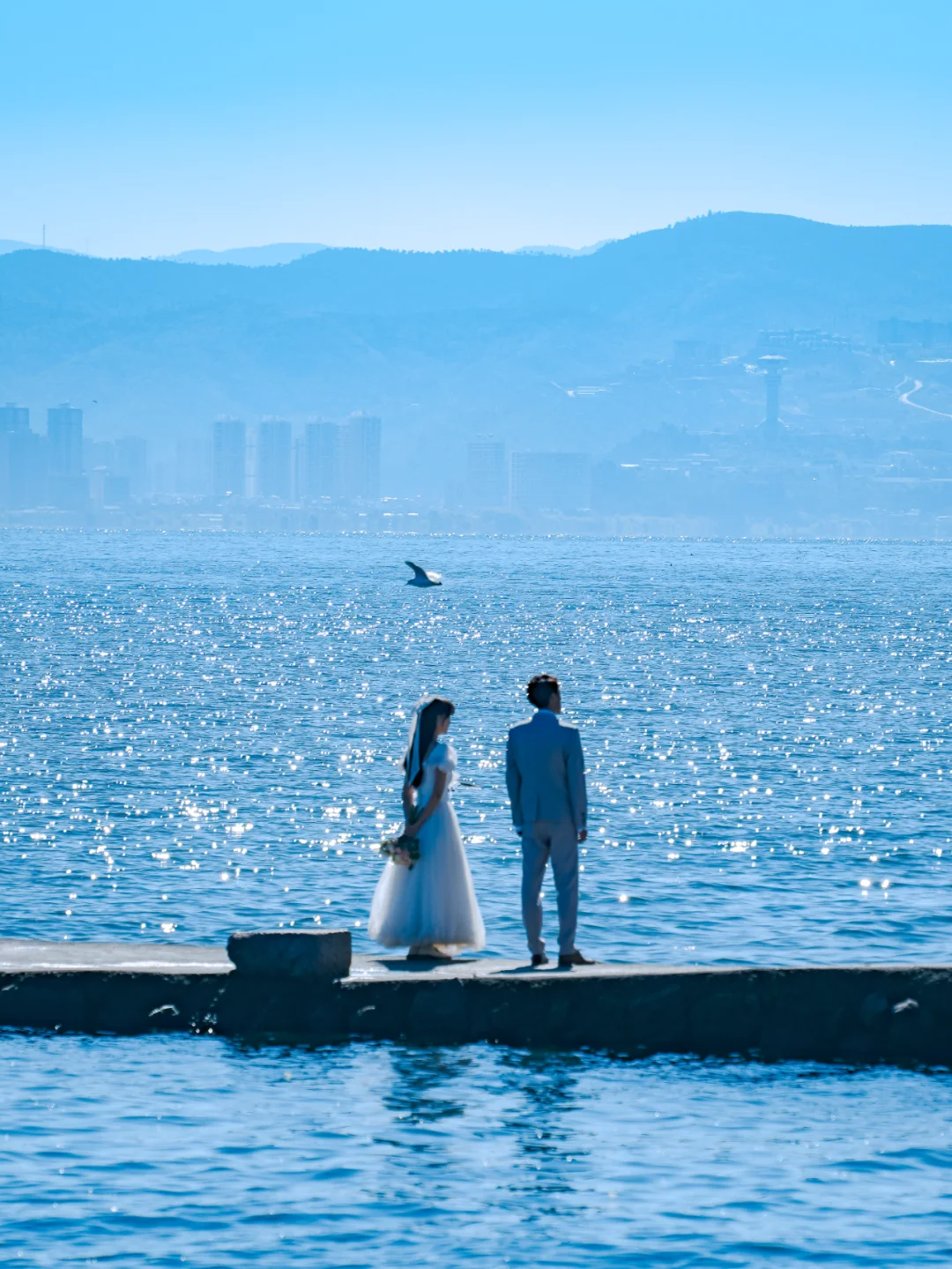 洁白的海鸥,金黄的银杏,湛蓝的洱海
