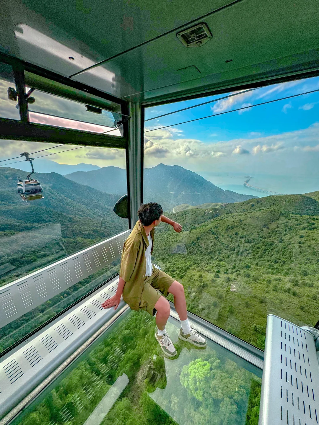 360度全透明的全景缆车,飞跃大屿山,高空纵览香港国际机场