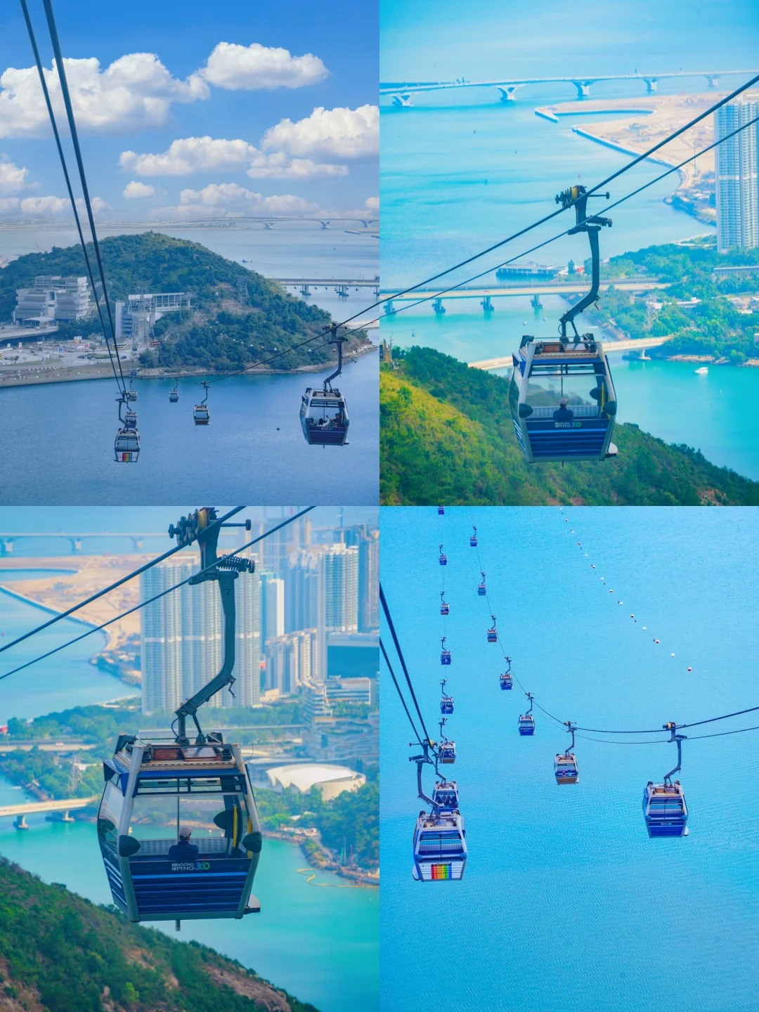 蔚蓝大海上的全景缆车,飞跃大屿山