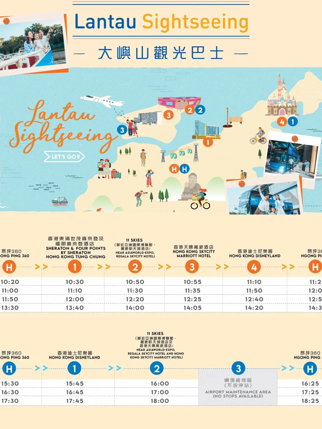 2️⃣下午线:昂坪360-香港迪士尼-11 skies-机场维修区(不设站点)-昂坪360