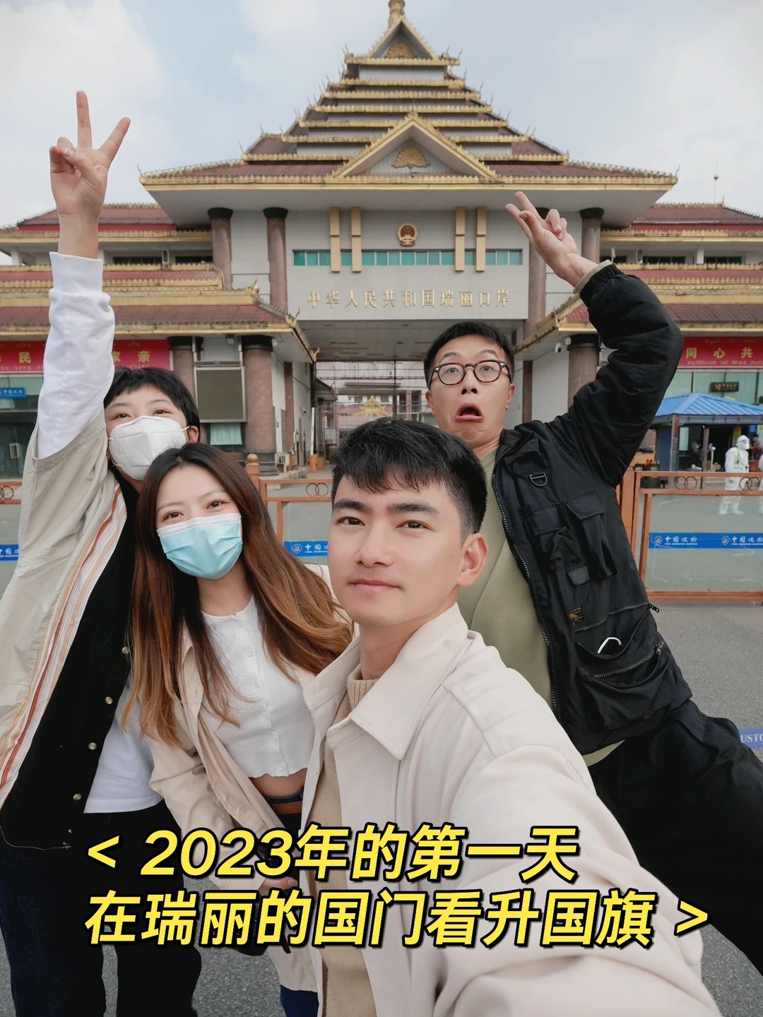 在中缅交界的瑞丽口岸国门,看了新年的升旗仪式