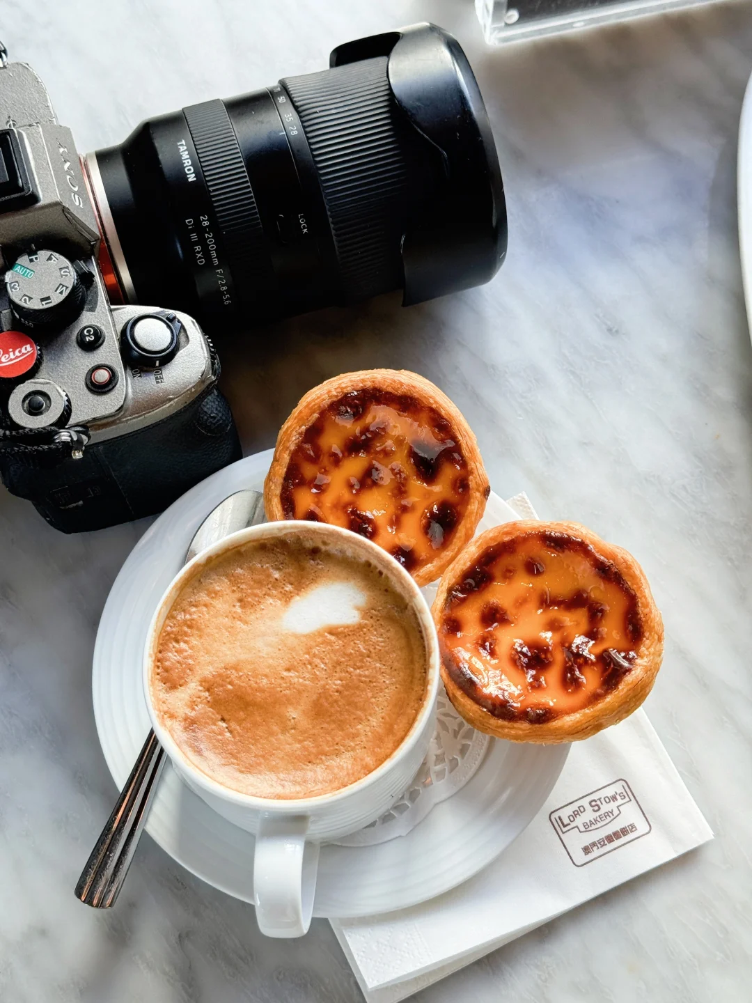 在海边坐着吃着蛋挞,喝着咖啡,拍拍好看的照片