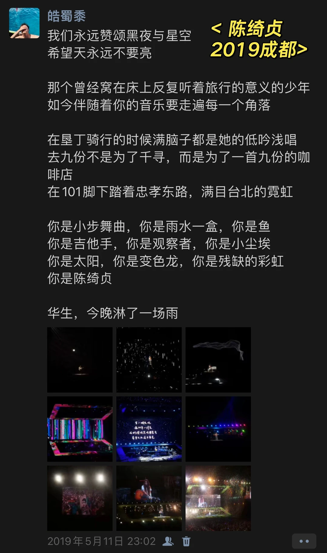 演唱会对我来说,就是全身心的沉浸在当时的世界里