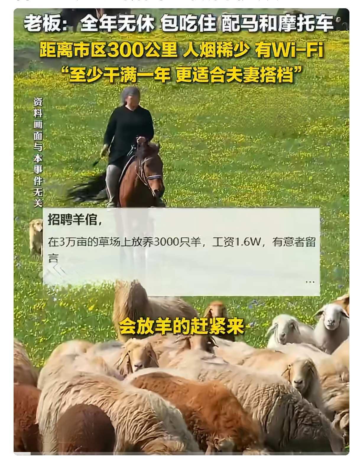 #月薪1.6万招人放3000只羊# #高薪工作背后的真相# #打工人的选择# #职场生存法则#