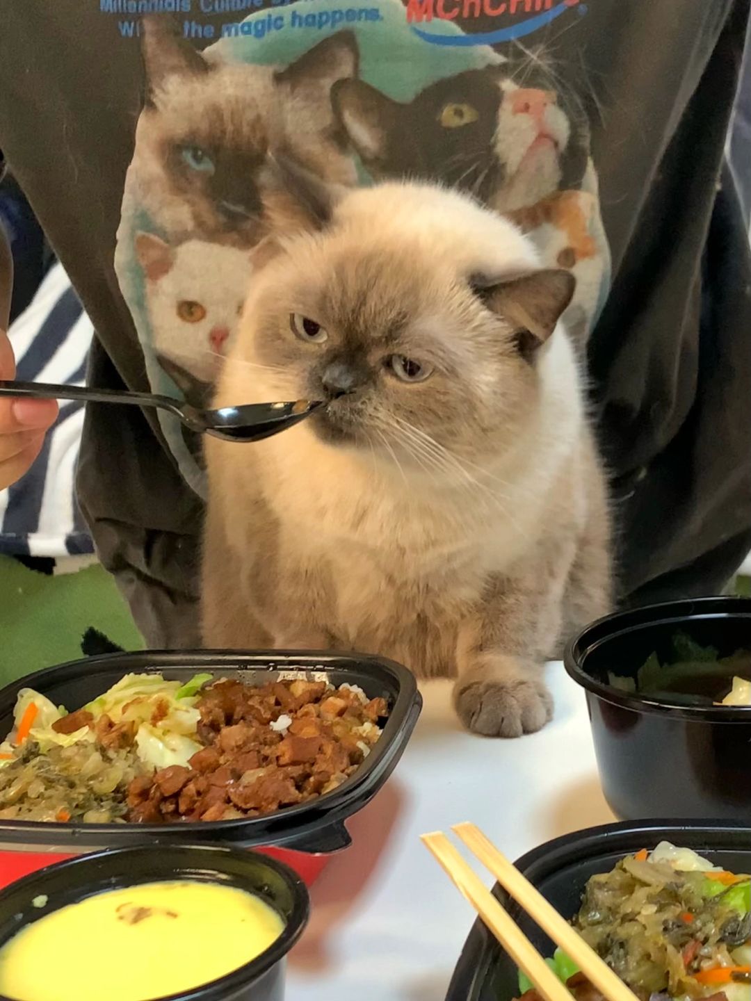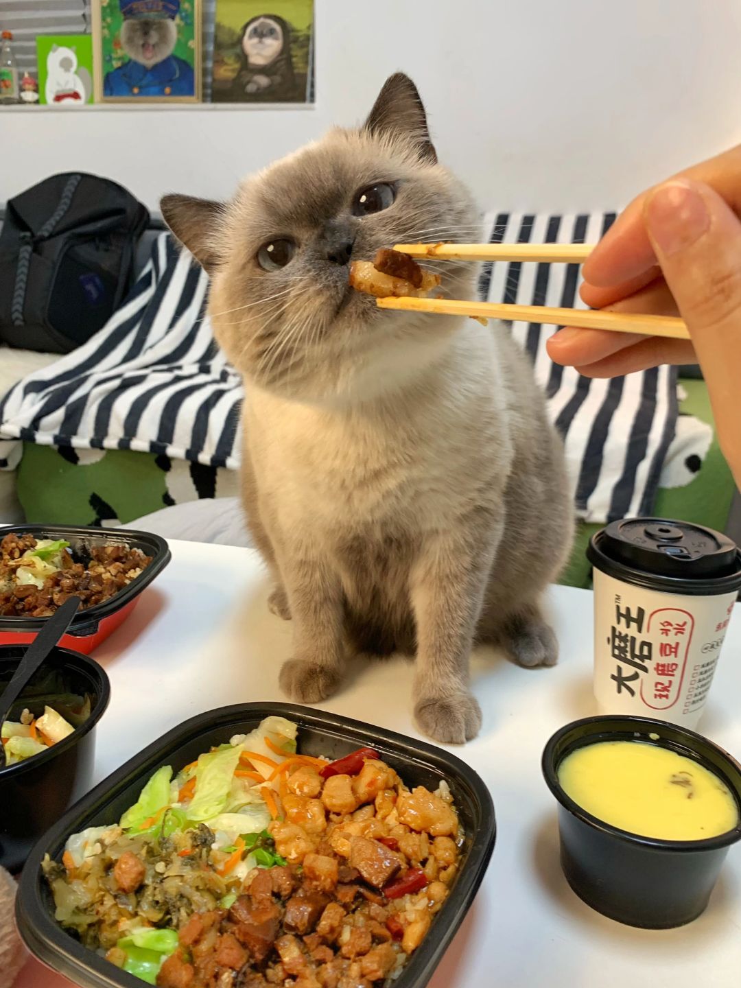 原则上是不让猫咪上饭桌的