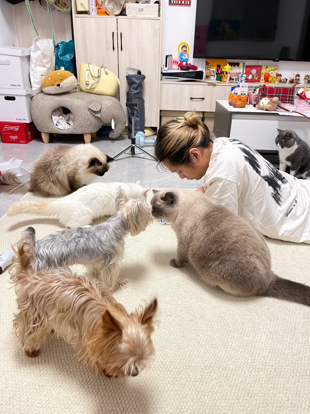 功夫最近终于敢出来客厅了
