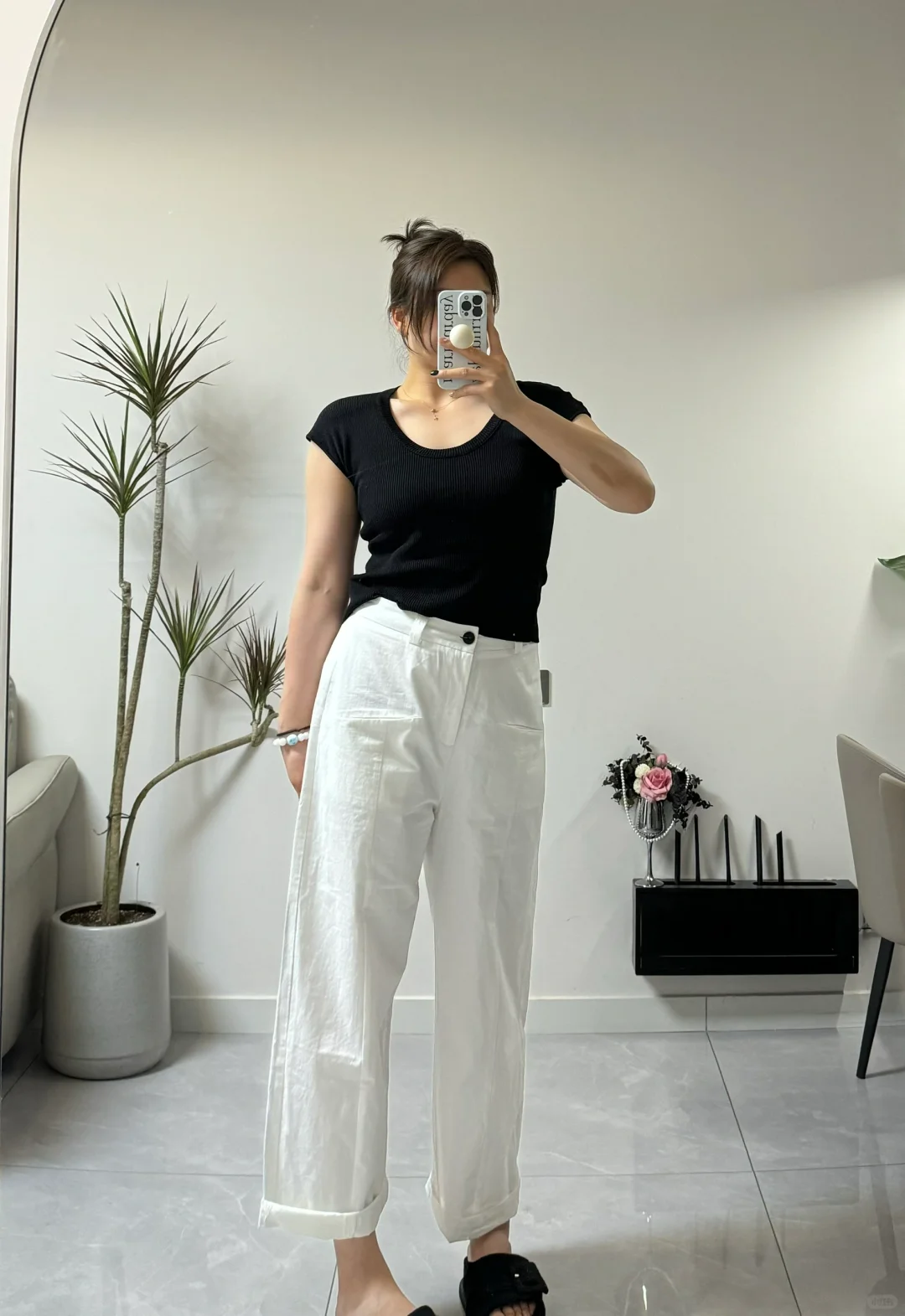 这一期裤子都是我最近日常在穿的 舒服百搭 长度不够长的我都把下面裤腿卷起来穿了 版型都超级好 显瘦遮肚子!