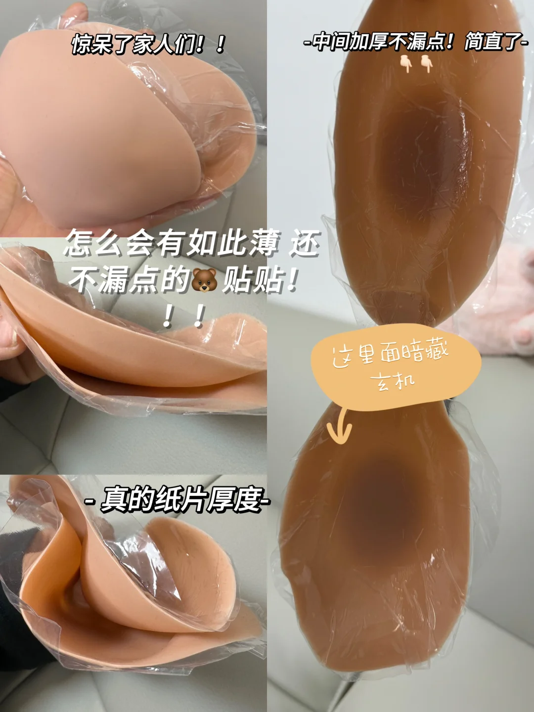 首先颜色 做了高度融合我们亚洲人肤色 重点是真的很薄!我是那种下垂且点点比较大的那种 这个贴贴中间做了隐形的加厚!真的不漏点!!昨天在外面玩了一天 出汗完全不松不掉!中国人不骗中国人!好用!