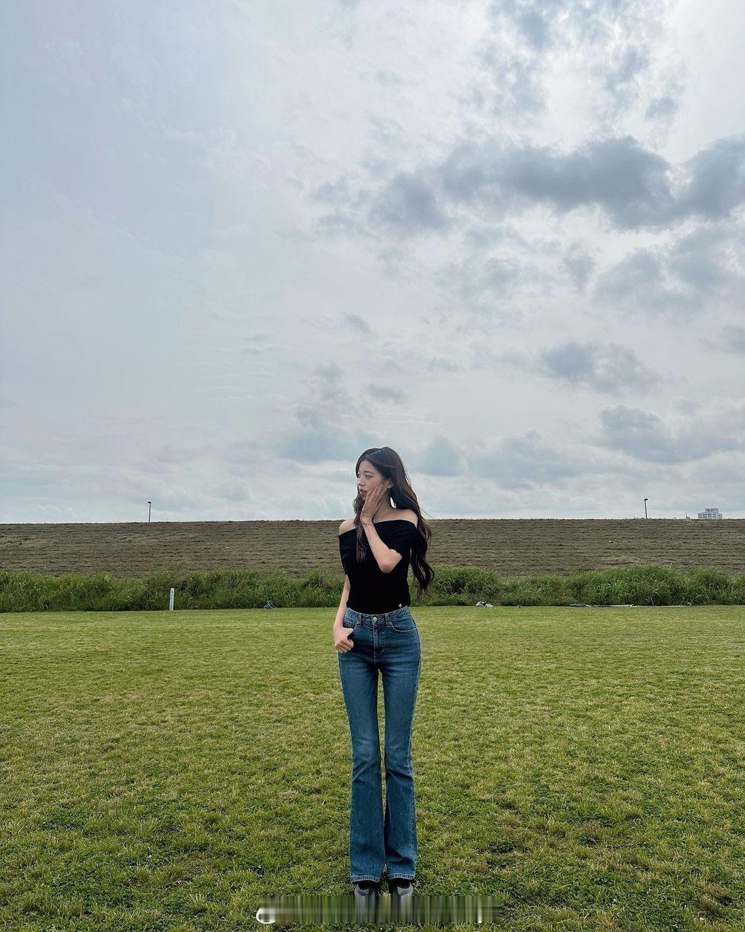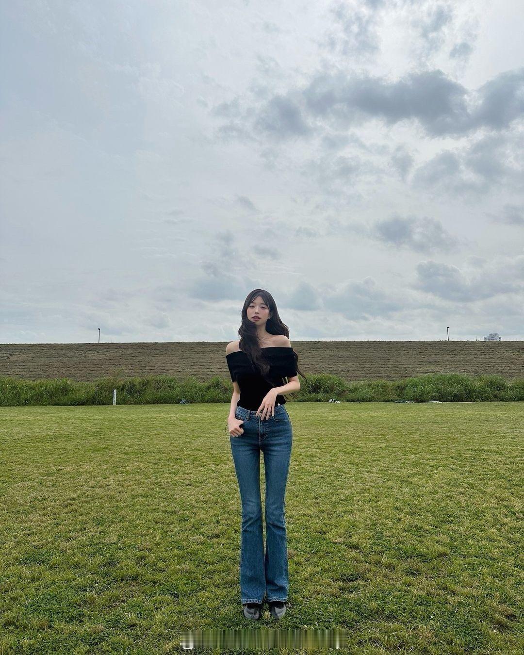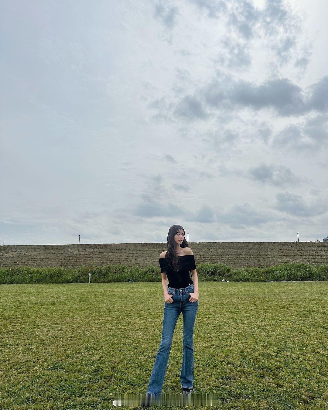 #张元英牛仔裤全身照#张元英ins晒照,这腿属实羡慕了~