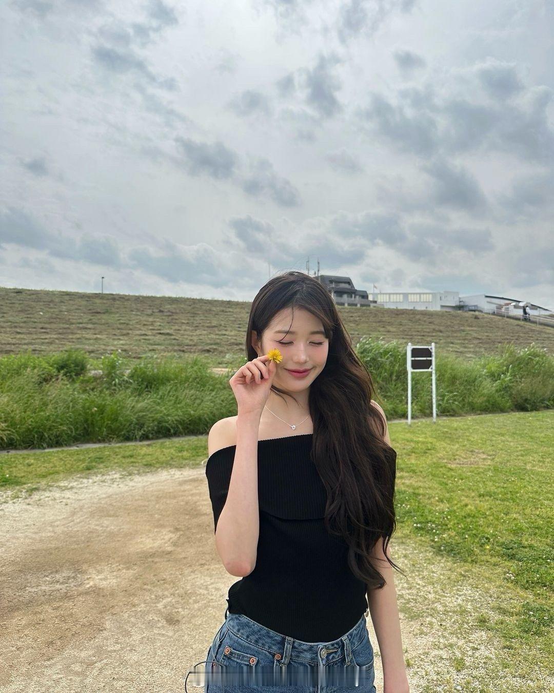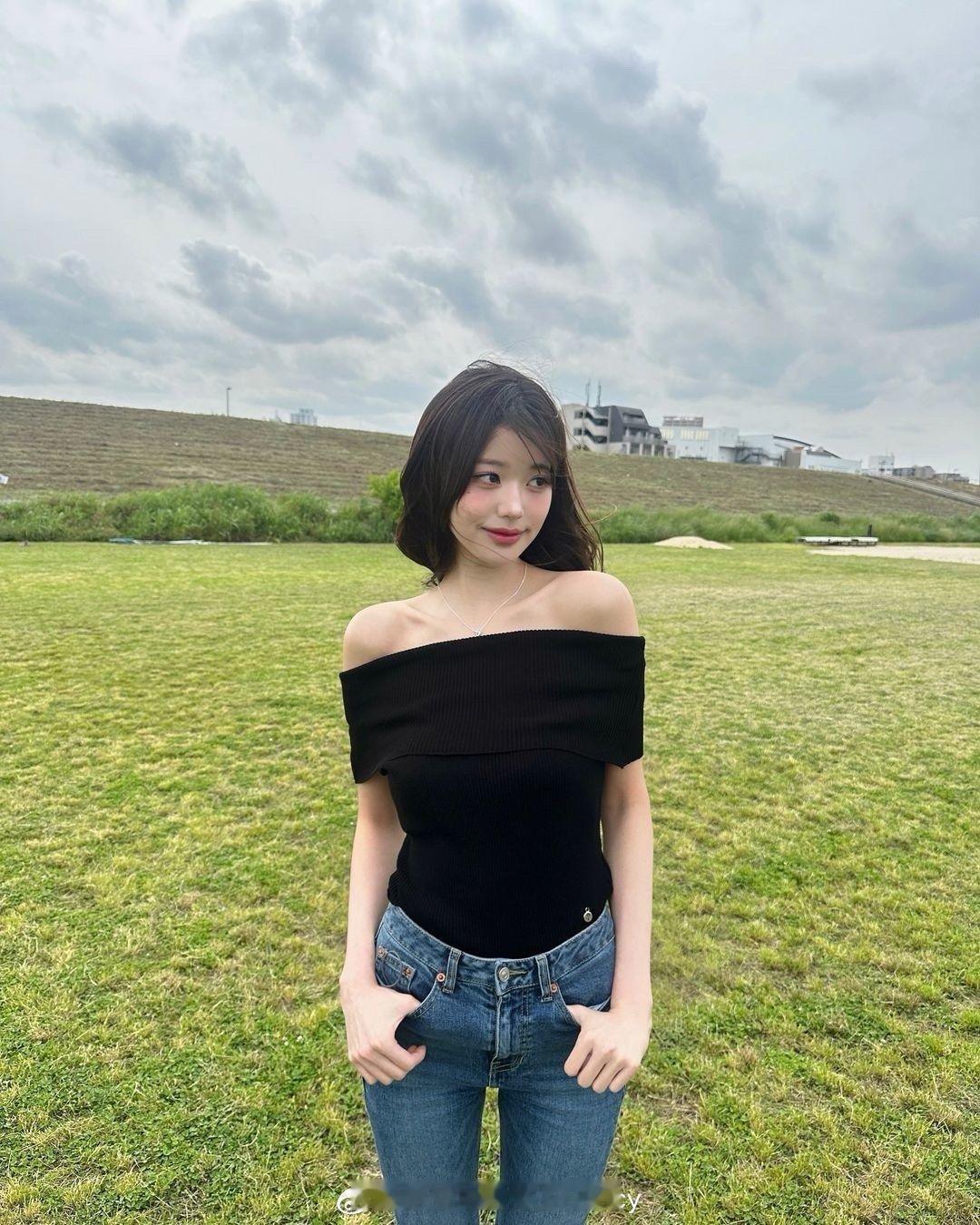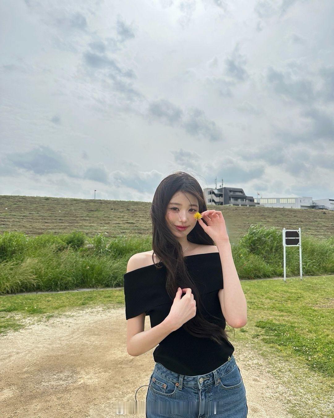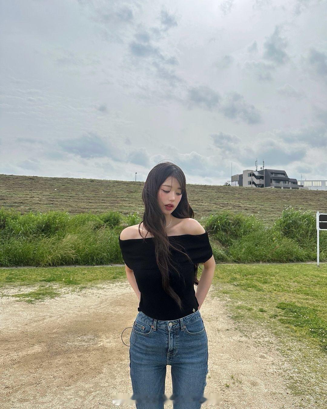 #张元英牛仔裤全身照#张元英ins晒照,这腿属实羡慕了~