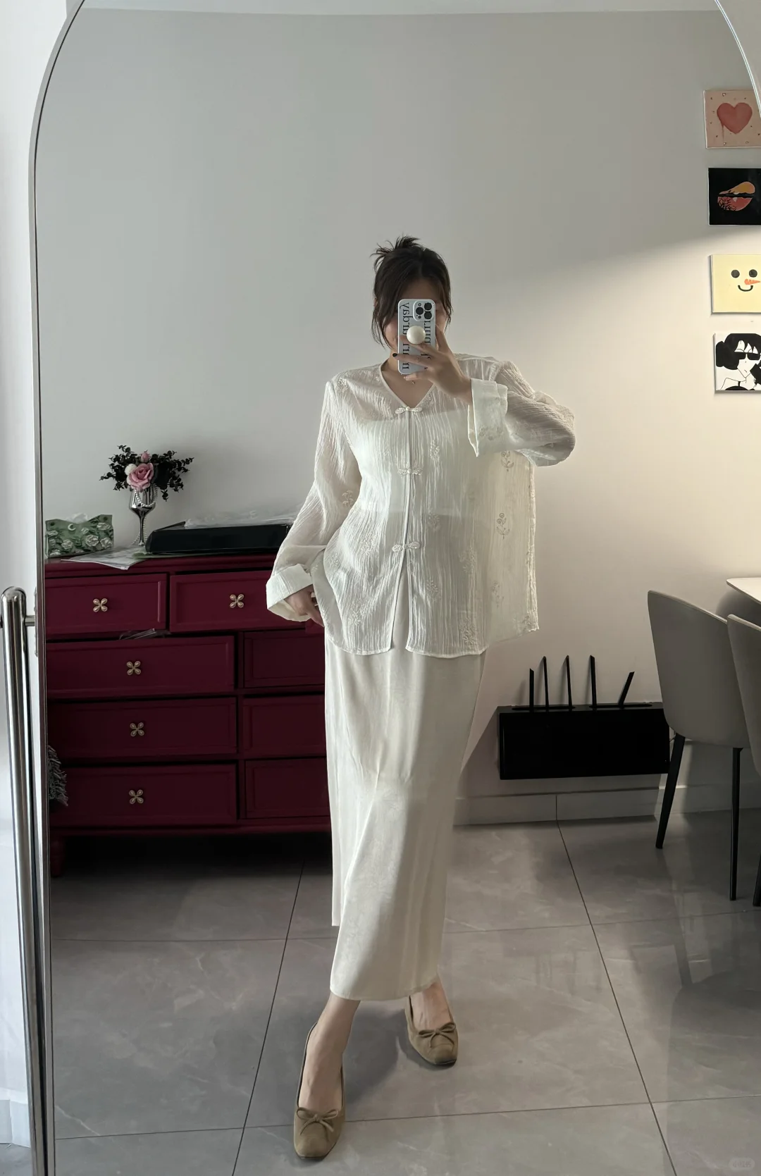 奶茶色半裙真是显瘦神器,浅色上衣一配,秒变纤瘦小仙女!我也要试试这样的搭配~✨