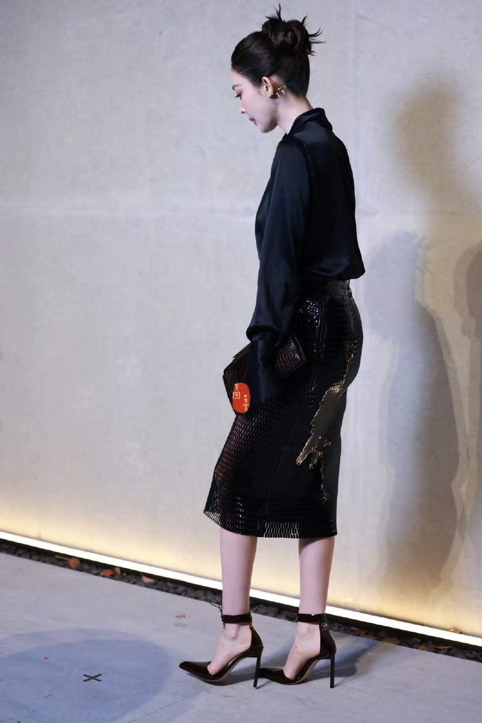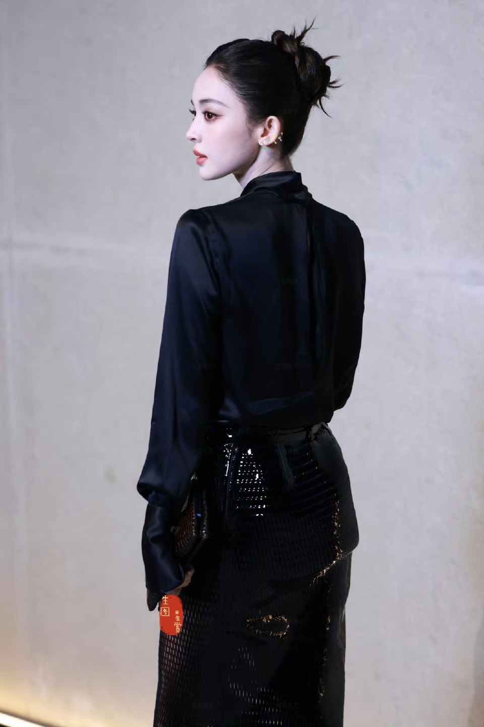 古力娜扎活动现场脚踩高跟穿包臀裙,美的像精致的黑玫瑰