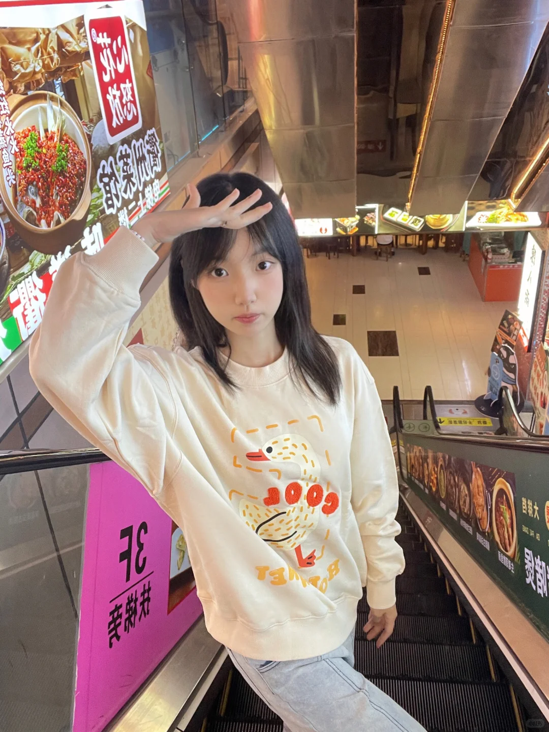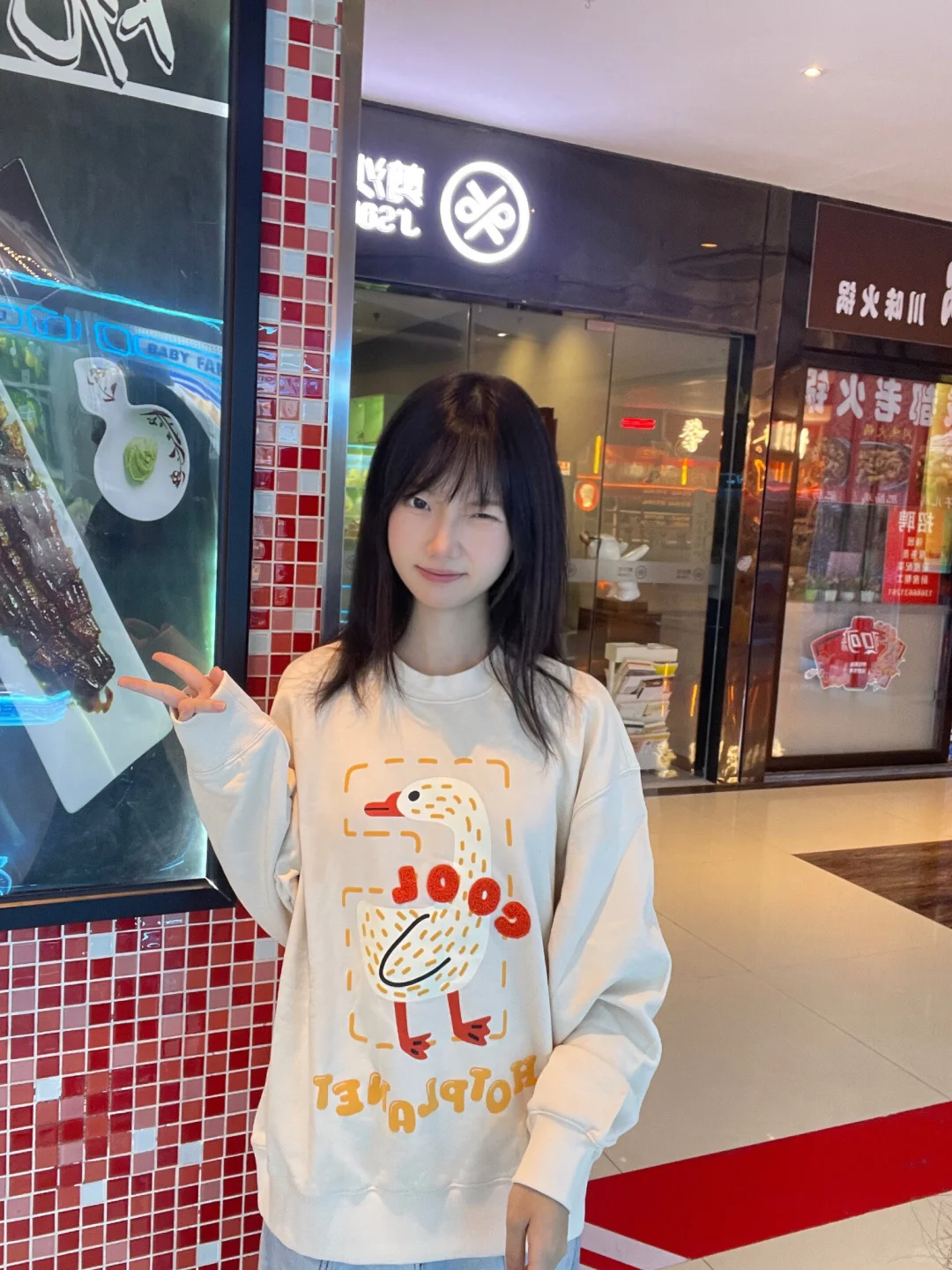今天选择了这件超可爱的鹅图案卫衣,搭配简单的牛仔裤,整个人都变得元气满满!✨