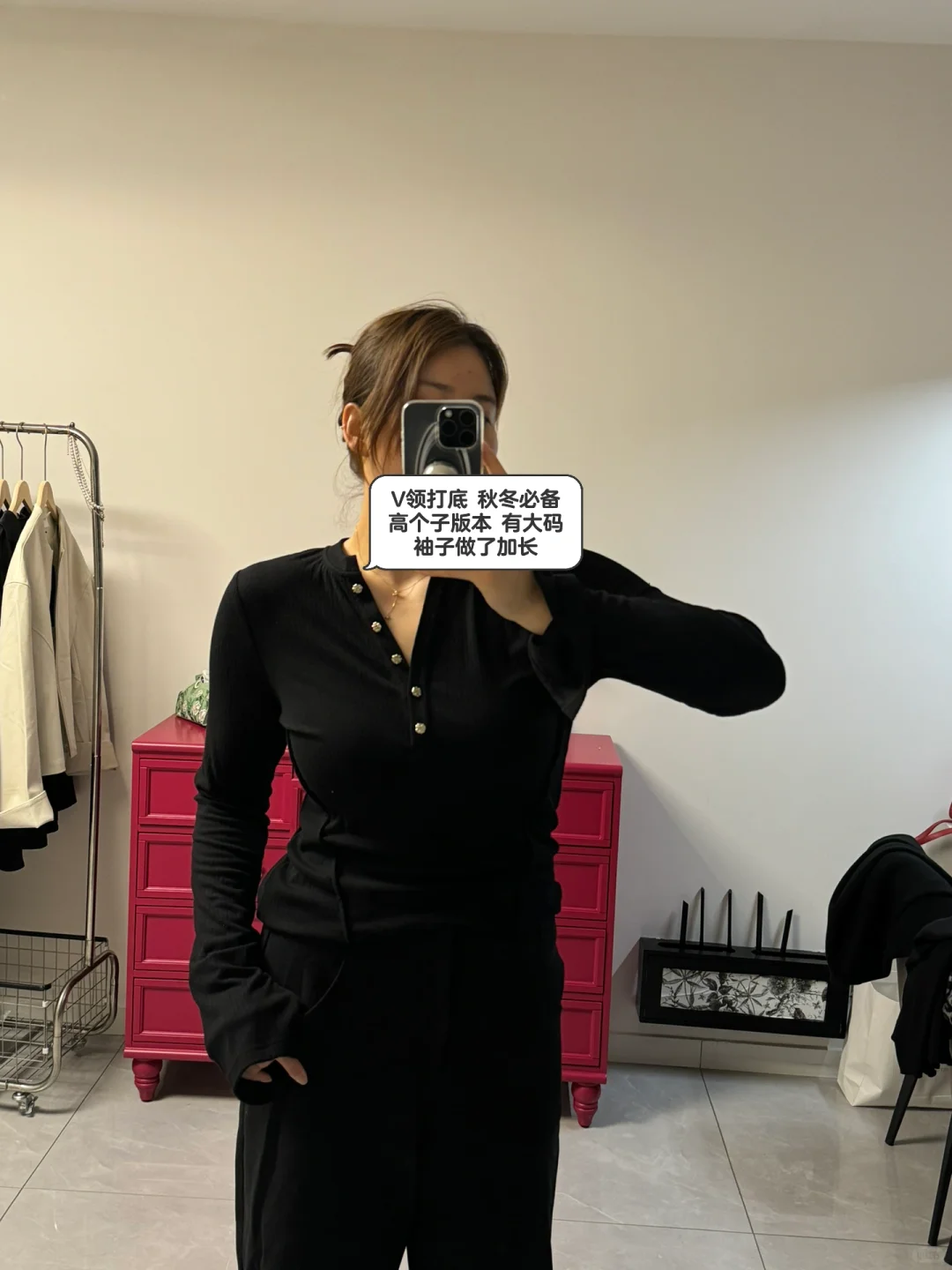 给姐妹们做了一款加长袖长的v领打底 面料做了升级 更舒服 抗起球面料