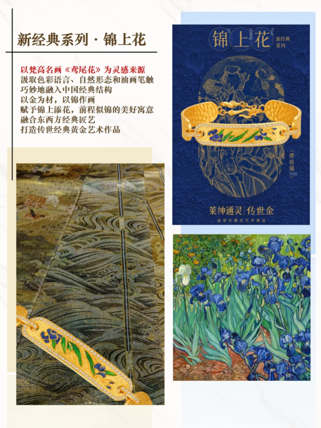 9月7日,秦岚出席Leysen莱绅通灵品牌苏州见面会真的不要太美了!这次,Leysen莱绅通灵品牌主要推出了新经典系列:锦上花。以梵高名画《鸢尾花》为灵感来源,汲取色彩语言、自然形态和油画笔触,巧妙地融入中国经典。以金为材,以锦作画,赋予锦上添花,前程似锦的美好寓意。融合东西方经典匠艺,打造传世经典黄金艺术作品。